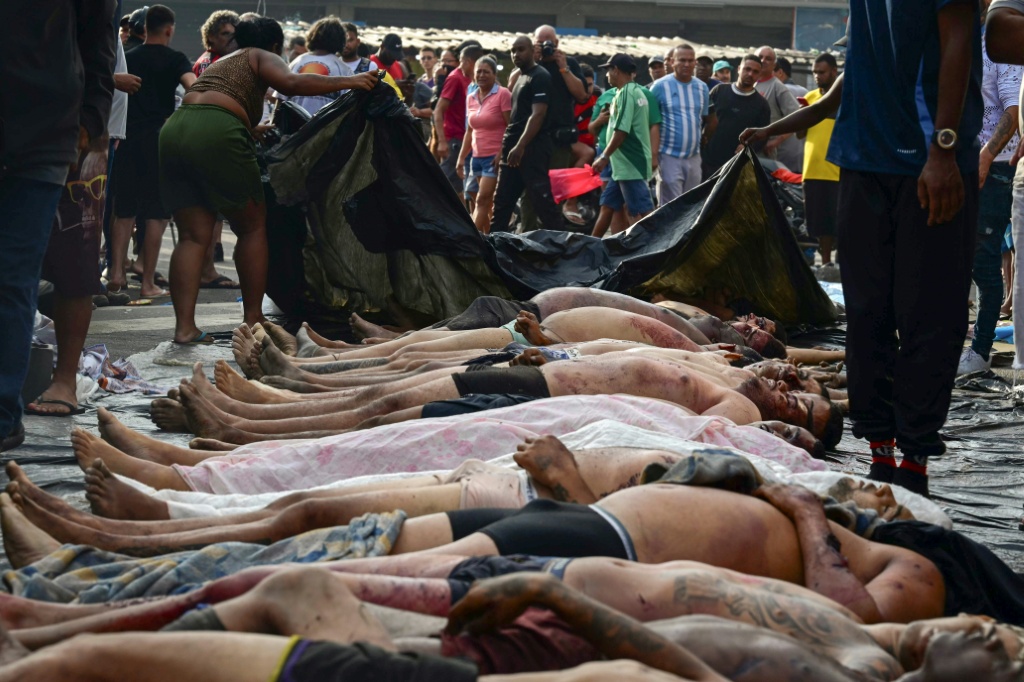 Em meio a soluços e ao cheiro de cadáveres, moradores do Complexo da Penha, na zona norte do Rio de Janeiro, enfileiraram dezenas de corpos em uma praça nesta quarta-feira (29), um dia após a megaoperação policial mais letal do país, com o pelo menos 119 mortos.