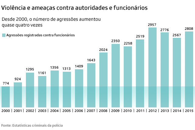 “Os agressores estão cada vez mais desrespeitosos e violentos”, disse Johanna Bundi Ryser, presidente da Associação dos Oficiais de Polícia da Suíça.