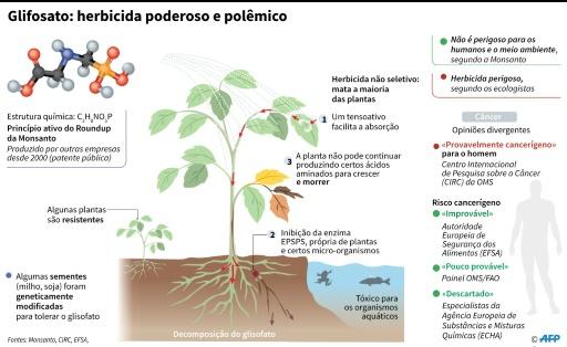 Dados sobre o glisofato, substância herbicida muito utilizada, cujos efeitos sobre a saúde são muito polêmicos. afp_tickers