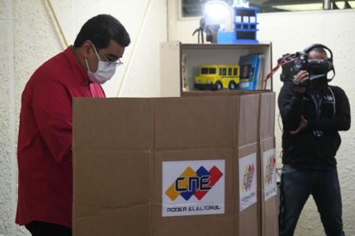 O presidente da Venezuela, Nicolas Maduro, vota em uma seção eleitoral na escola Simon Rodriguez em Fuerte Tiuna, Caracas, em 8 de agosto de 2021, durante as eleições primárias do Partido Socialista Unido da Venezuela (PSUV) afp_tickers