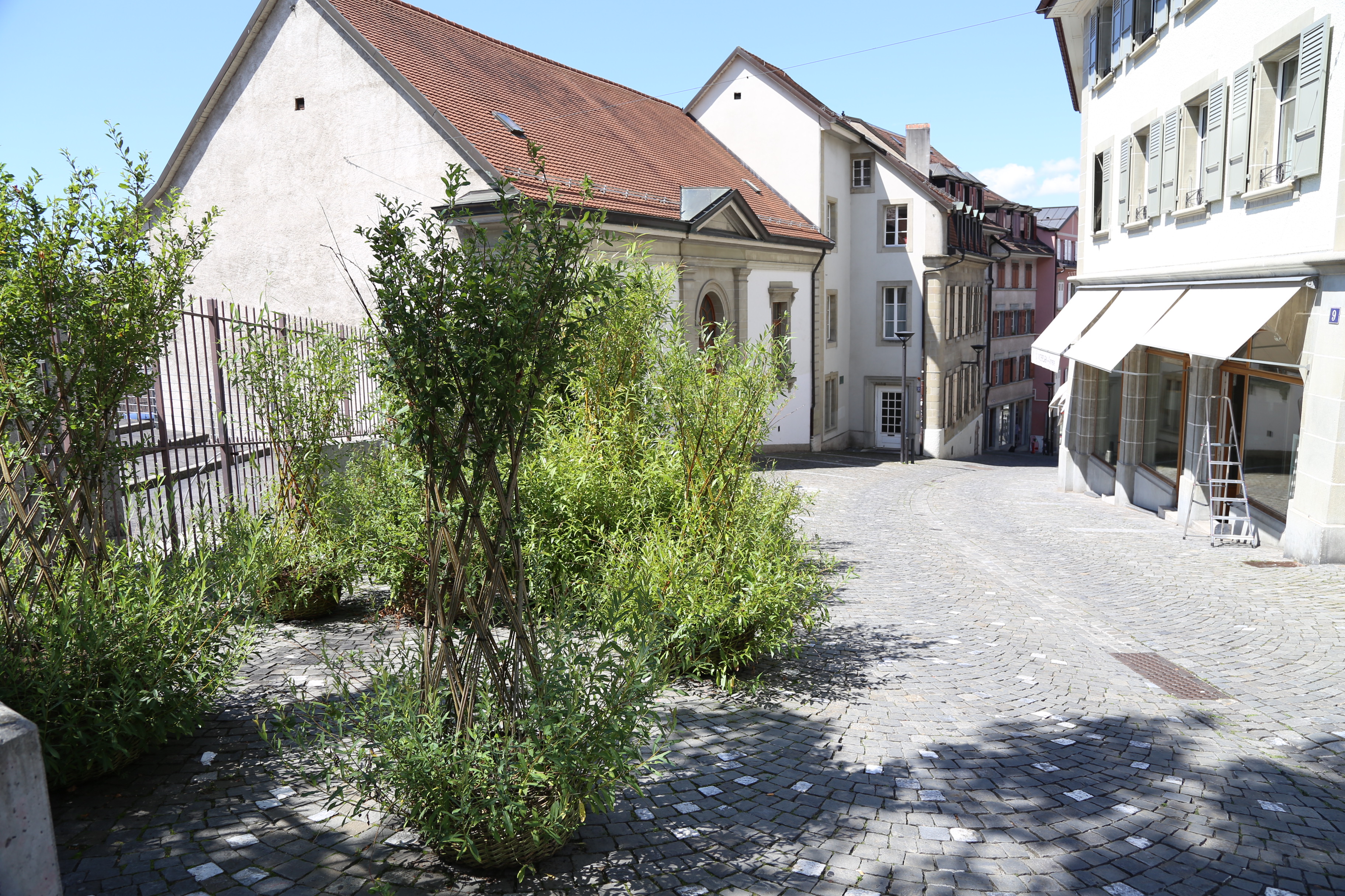 Люцерн и Женева также сталкиваются сейчас с этим феноменом, и они тоже планируют посадить у себя больше деревьев и предпочитают жаро- и засухоустойчивые виды. Женева, в частности, намерена увеличить долю зеленых насаждений в общей площади города с 21% до 30% уже к 2050 году. Кроме того, с улиц города уже были удалены около 3 000 квадратных метров асфальта, и сейчас городские власти и планировщики работают над тем, чтобы вернуть в город грунтовые воды. Об говорит, в частности, Филипп Д’Эспин (Philippe D’Espine), пресс-секретарь правительства города Женевы.