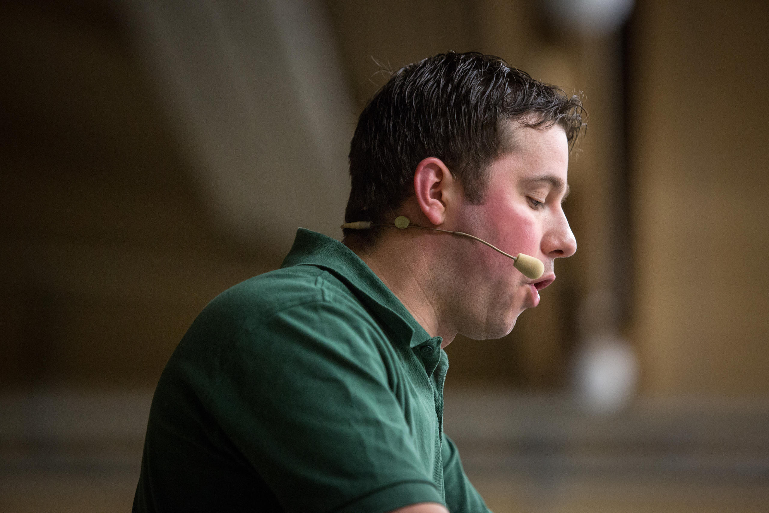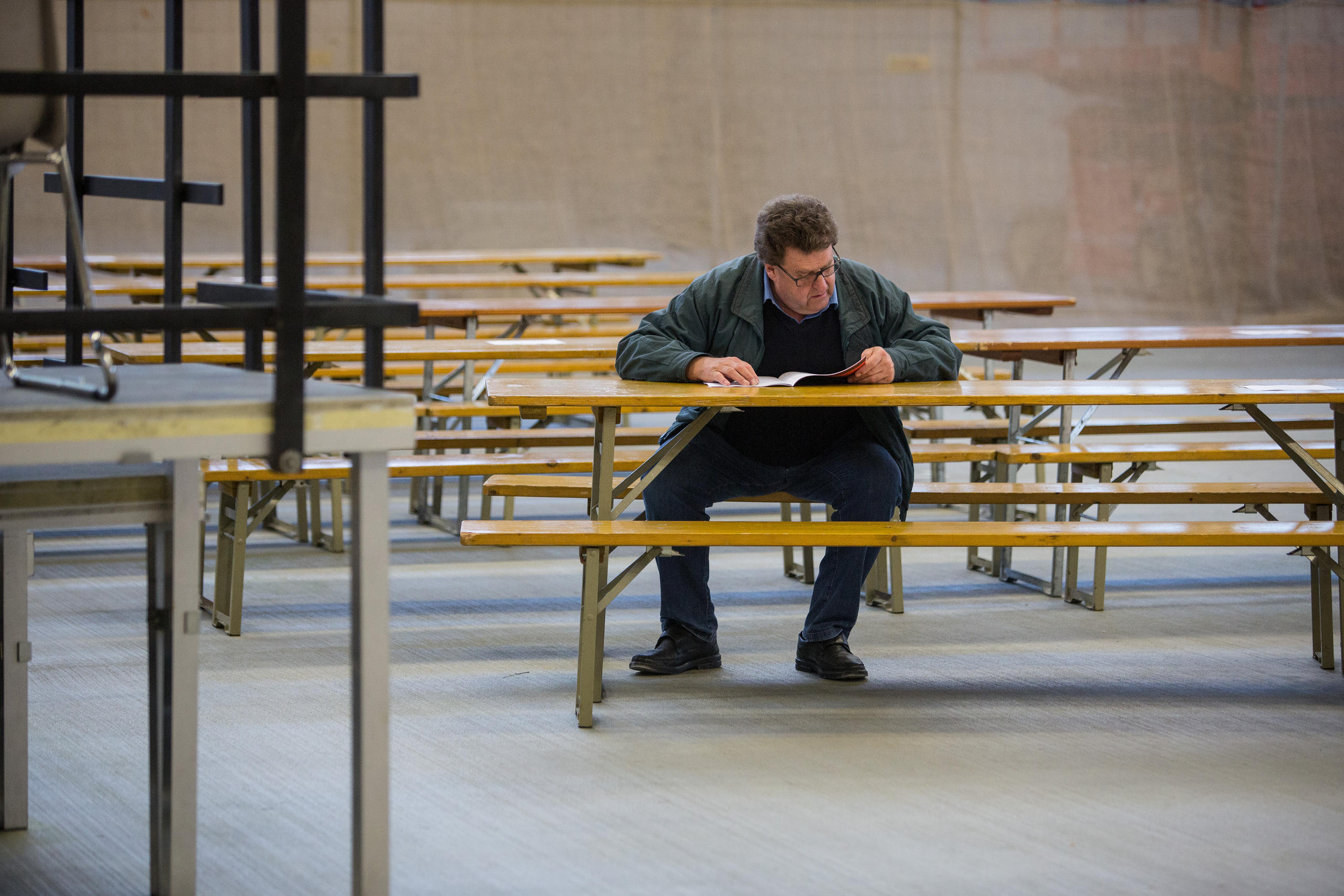 Пока снаружи гудят компрессоры моечных аппаратов, он смотрит на экран своего компьютера. Несколько бурых коров терпеливо стоят в тумане из брызг, образовавшемся от мощных водяных струй. Подъезжает грузовик, он привез на разгрузку последнюю группу животных. «Меня зовут Михаэль», — коротко представляется он. Михаэль Рюгзеггер (Michael Rüegsegger) — профессионал ведущий торгов на аукционе. Он смотрит на меня и добавляет: «День нам предстоит долгий».
