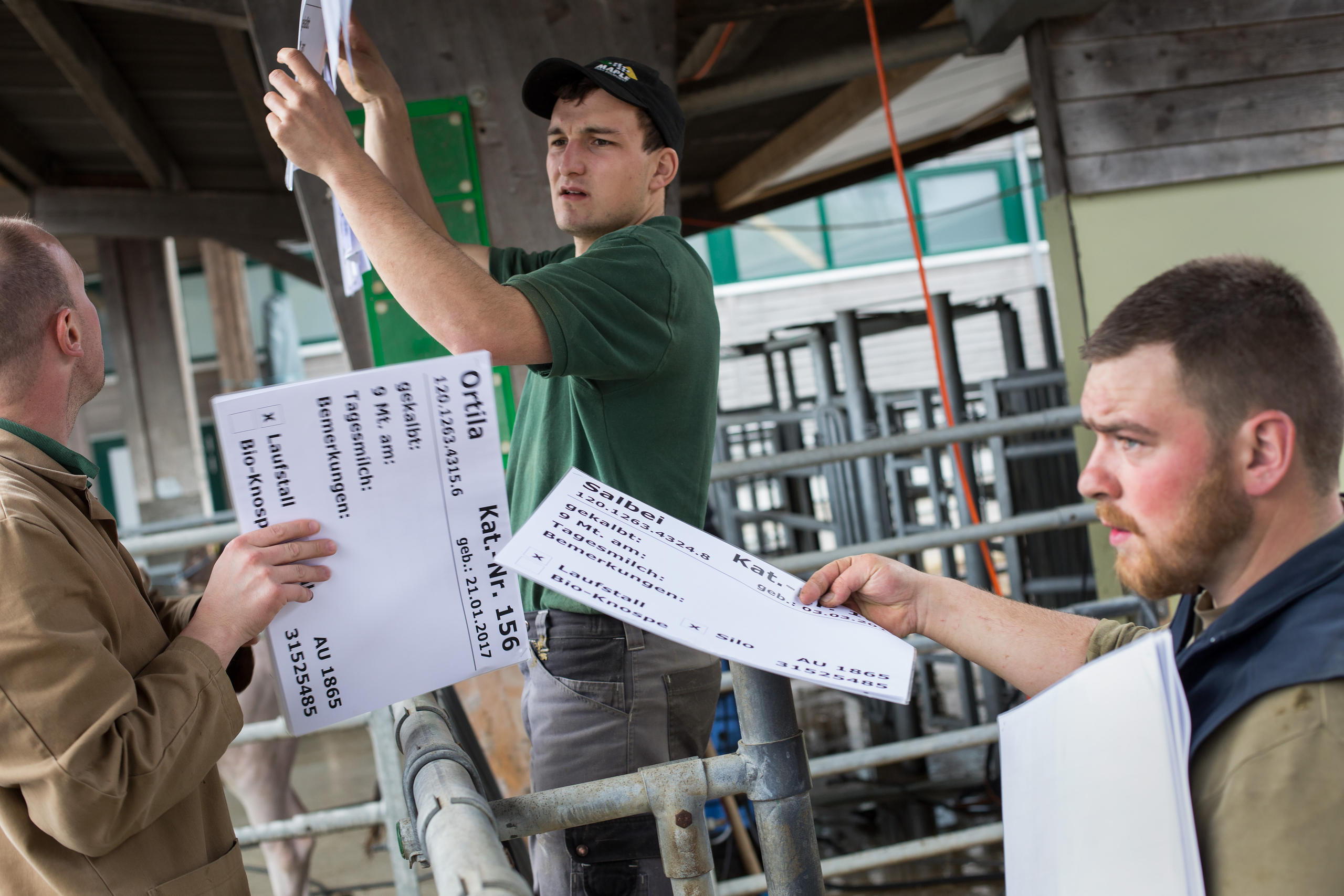 Продажа столь крупной партии животных из одного хозяйства — редкая удача, поэтому ожидается, что сюда приедут заинтересованные покупатели со всей Швейцарии. Распорядок дня в Брунегге полностью определяется вечерним действом. К работе здесь привлекли множество дополнительных помощников: животных ведь нужно чистить, дважды в день доить, кормить, а еще нужно правильно обозначить перед каждой из коров информацию о животном. Все эти хлопоты были возложены на плечи молодых фермеров, уже накопивших опыт ухода за домашним скотом.