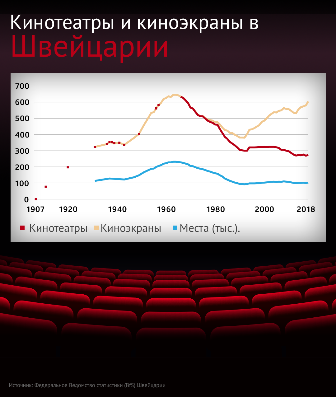 Вопрос только, а что смотреть? Очередную франшизу про супергероев «Марвел», особенно с учетом того, что новый, действительно новаторский киноязык ищется сейчас за пределами мейнстрима, на территории сериаловВнешняя ссылка или в формате такого кинопроекта, как «ДауВнешняя ссылка» Ильи Хржановского. Итак, остается вопрос, когда швейцарские кинозалы реально начнут работать? Теоретически их двери могут снова открыться уже 6 июня, но это очень непростое решение для владельцев кинотеатров: они не хотят открываться слишком рано и потом рисковать быть вынужденными закрыться снова, как это случилось в Китае.