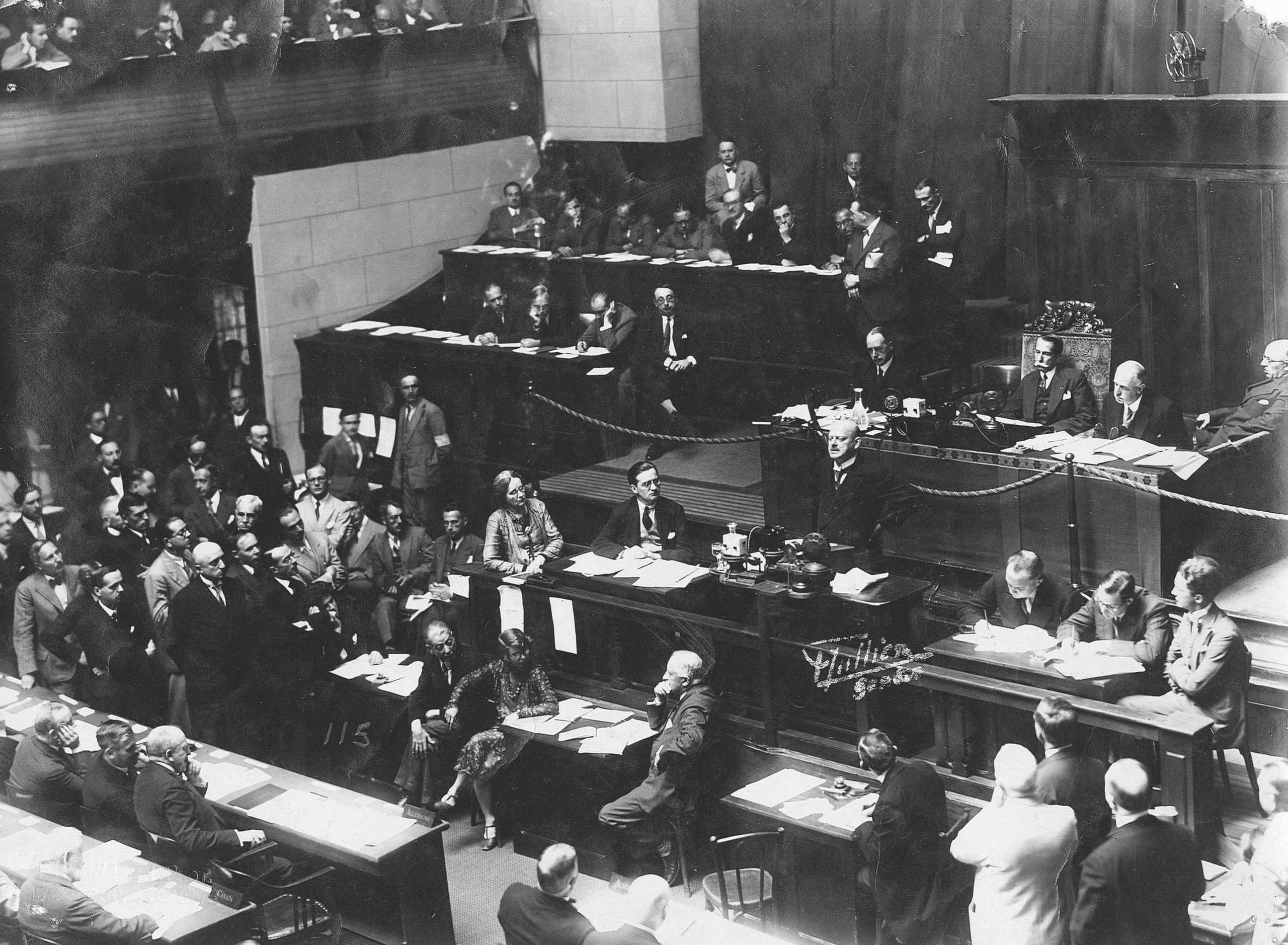 Ведь уже в тот период мир был разделен не на два лагеря, а на три: победители войны, проигравшие и советская империя, которая с тех пор постоянно пыталась натравить первых на вторых или наоборот. Под тонким слоем идеалов всегда можно было почти без труда разглядеть интересы национально-эгоистического, имперского, захватнического характера. Очень хорошо эту проблему очертил швейцарский представитель, выступавший в Лиге Наций в связи с предложением принять в нее красную Россию.