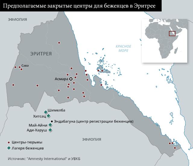 По данным Управления Верховного комиссара ООН по делам беженцев (УВКБ) каждый месяц более четырех тысяч эритрейцев незаконно пересекают границу с Эфиопией и Суданом, спасаясь от тоталитарного режима Исайяса Афеворка.