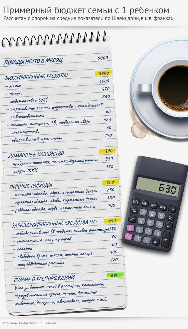 Средний доступный медианный (не путать со средним) доход в Швейцарии равняется 6 984 франкам в месяц (447 000 рублей, или 188 000 гривен, из расчета 1 франк = 64 рубля или 27 гривен) на домохозяйство, и это после вычета всех обязательных платежей, таких как отчисления в фонды социального страхования, налоги, алименты и т.д.
