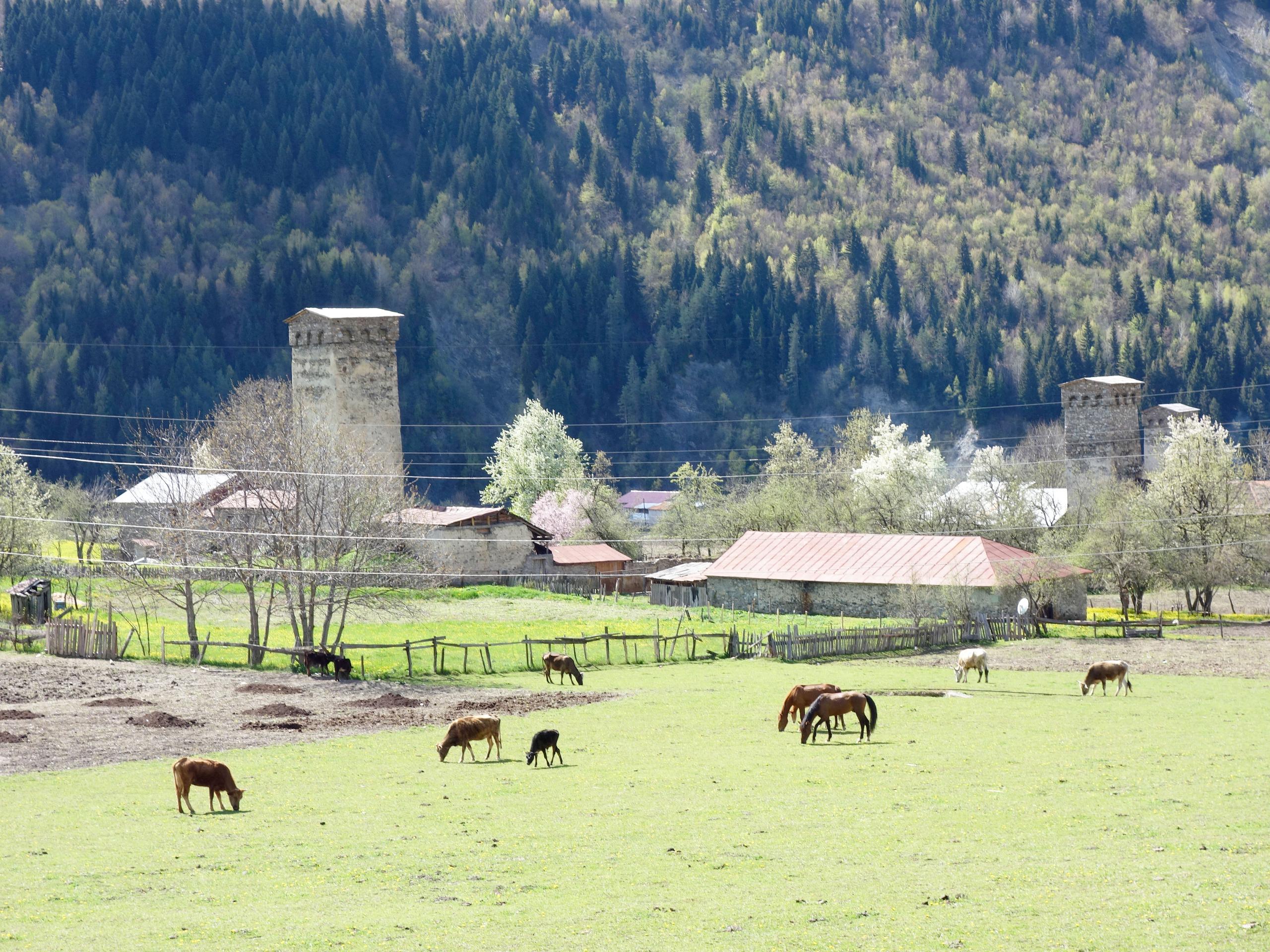 Семьдесят километров горного серпантина вдоль реки Ингури, текущей по Сванетской котловине, кажутся почти бесконечными. Сначала дорога вьется среди глубоких ущелий, а потом взору вдруг открывается на удивление разнообразный ландшафт, почти идиллия с пасущимися коровами, овцами, козами и лошадьми, цветущими деревьями и ароматом созревающих трав. Это — Сванетия.