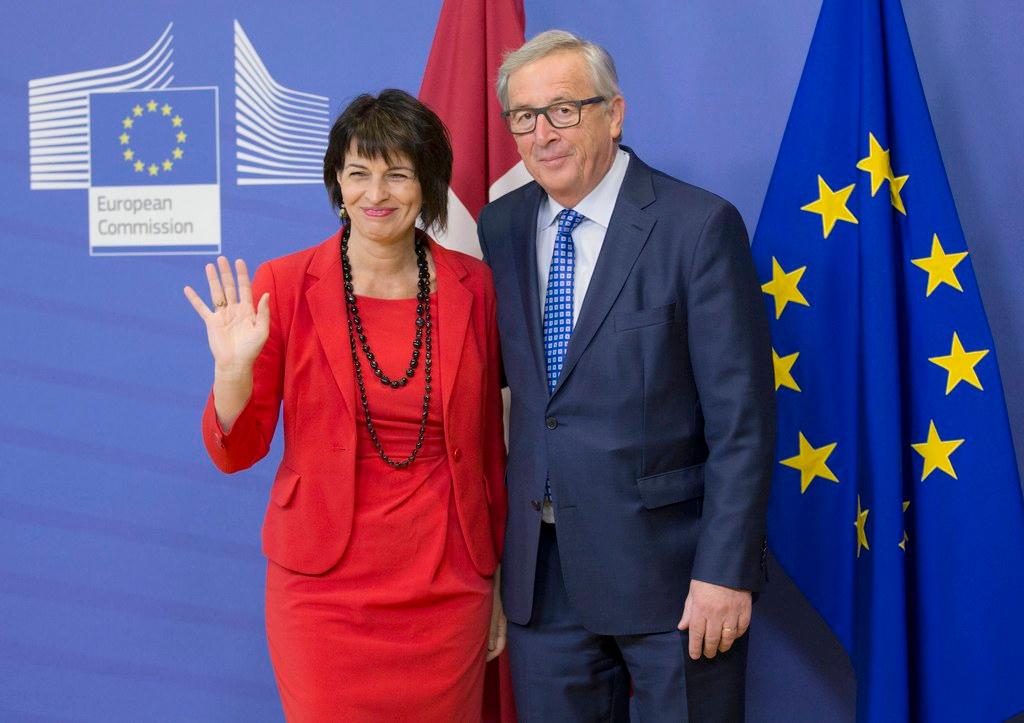Можно сказать, используя дипломатический жаргон, что «стороны продолжают исходить из позитивной динамики развития двустороннего досье». Дорис Лойтхард и Жан-Клод Юнкер. Keystone/EPA/Olivier Hoslet