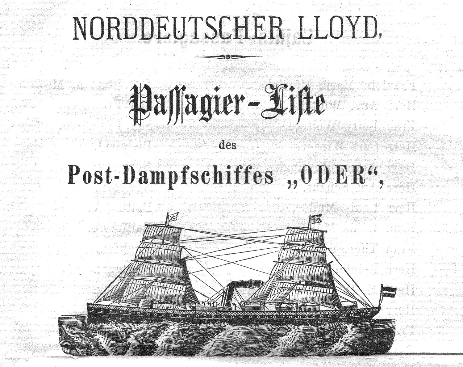 21 августа 1874 года они сели в Гавре на пароход Oder судоходной линии Norddeutscher Lloyd. Беатрикс Ренгли живо передала атмосферу прощания: сцены на палубе были полны грусти, но также и оживления, радости. По её признанию, её собственная печаль была не столь сильна — ведь расставание с родными местами произошло несколькими днями ранее. Большую часть своих записей она посвятила морскому переходу через Атлантику. Беатрикс Ренгли делится в своих записках наблюдениями о жизни на судне, подчёркивает удобства кают второго класса, с иронией упоминает «тиранию желудка» и «отвратительный кофе», а также даёт подробное описание самого судна. Помимо морской болезни, Ренгли упомянула и другие драматические события в открытом море — так, во время шторма экипаж «Одера» пришёл на помощь грузовому паруснику, оказавшемуся в бедственном положении.