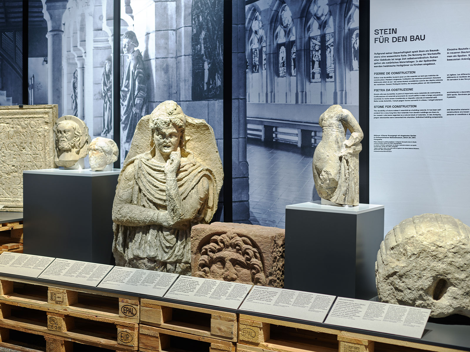 Повторно используемые строительные блоки, так называемые «сполии», представленные на выставке Das zweite Leben der Dinge («Вторая жизнь вещей») в Национальном историческом музее в Цюрихе. Schweizerisches Nationalmuseum
