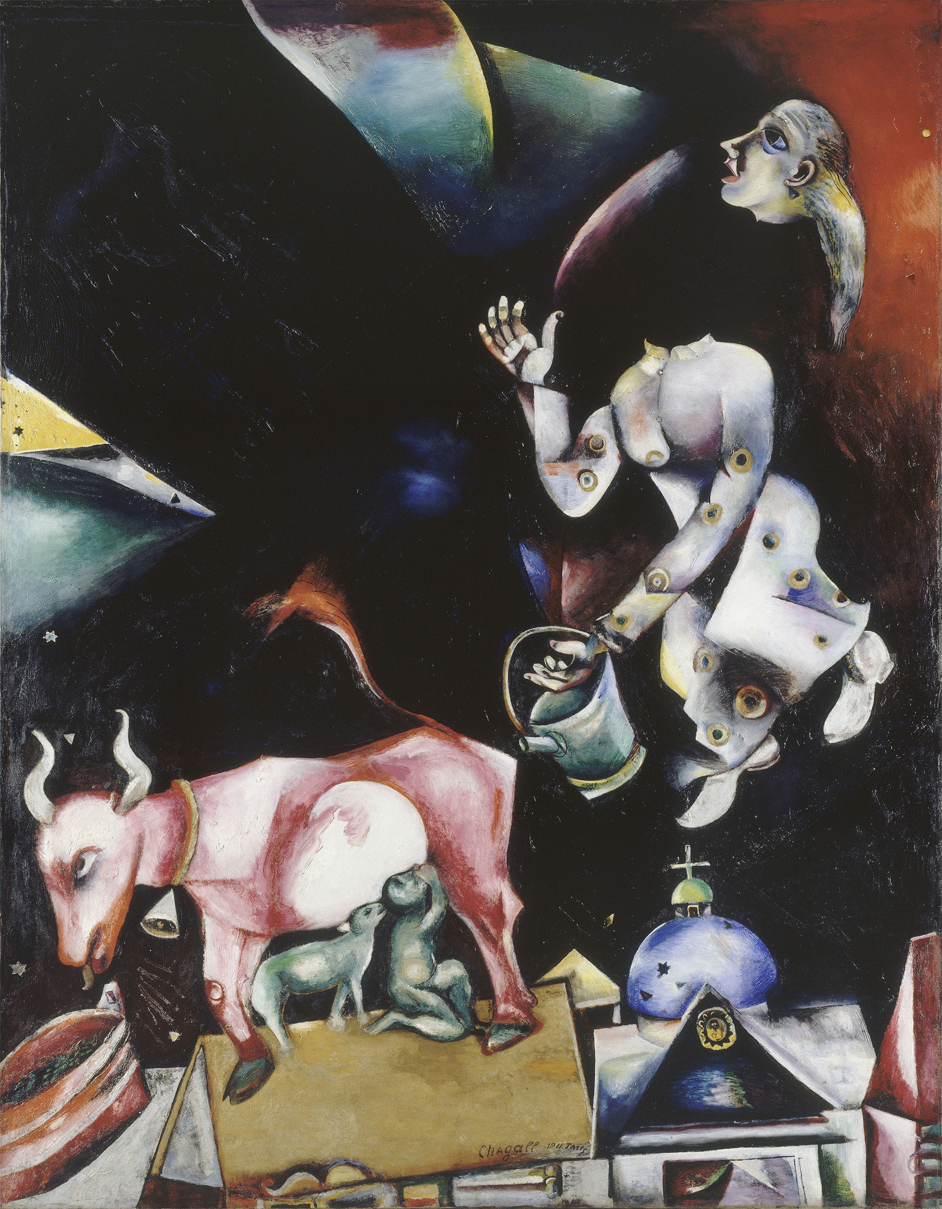 «Наверное, с вами тоже бывало такое: бродишь по музею, переходишь от одного шедевра к другому, от одного мастера к другому, а все равно чувствуешь, что чего-то не хватает. Помню, что это чувство неудовлетворенности преследовало меня с самого детства. Вот почему я предпочел — как некоторые считают — потерять рассудок, нежели повиноваться правилам всех этих «школ», следовать каким-то методам». (Из интервью Марка Шагала с Рене Генне, 1927 г.)