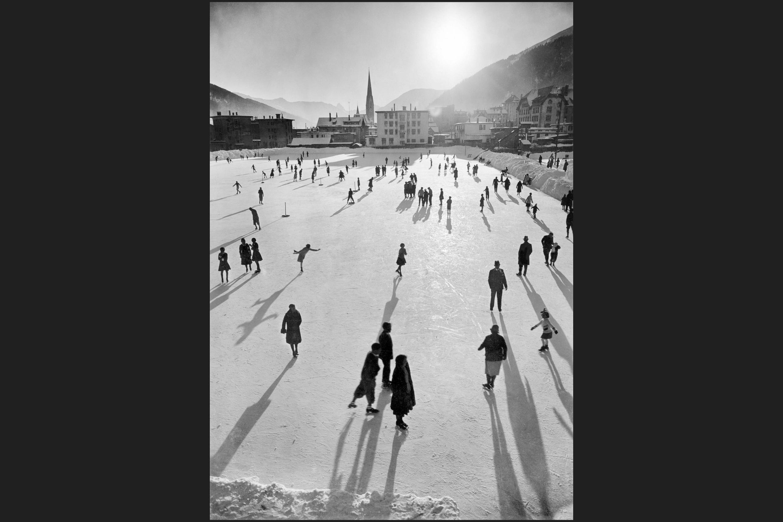Классические зимние развлечения: катание на коньках в Давосе, 1920-е годы (Keystone).