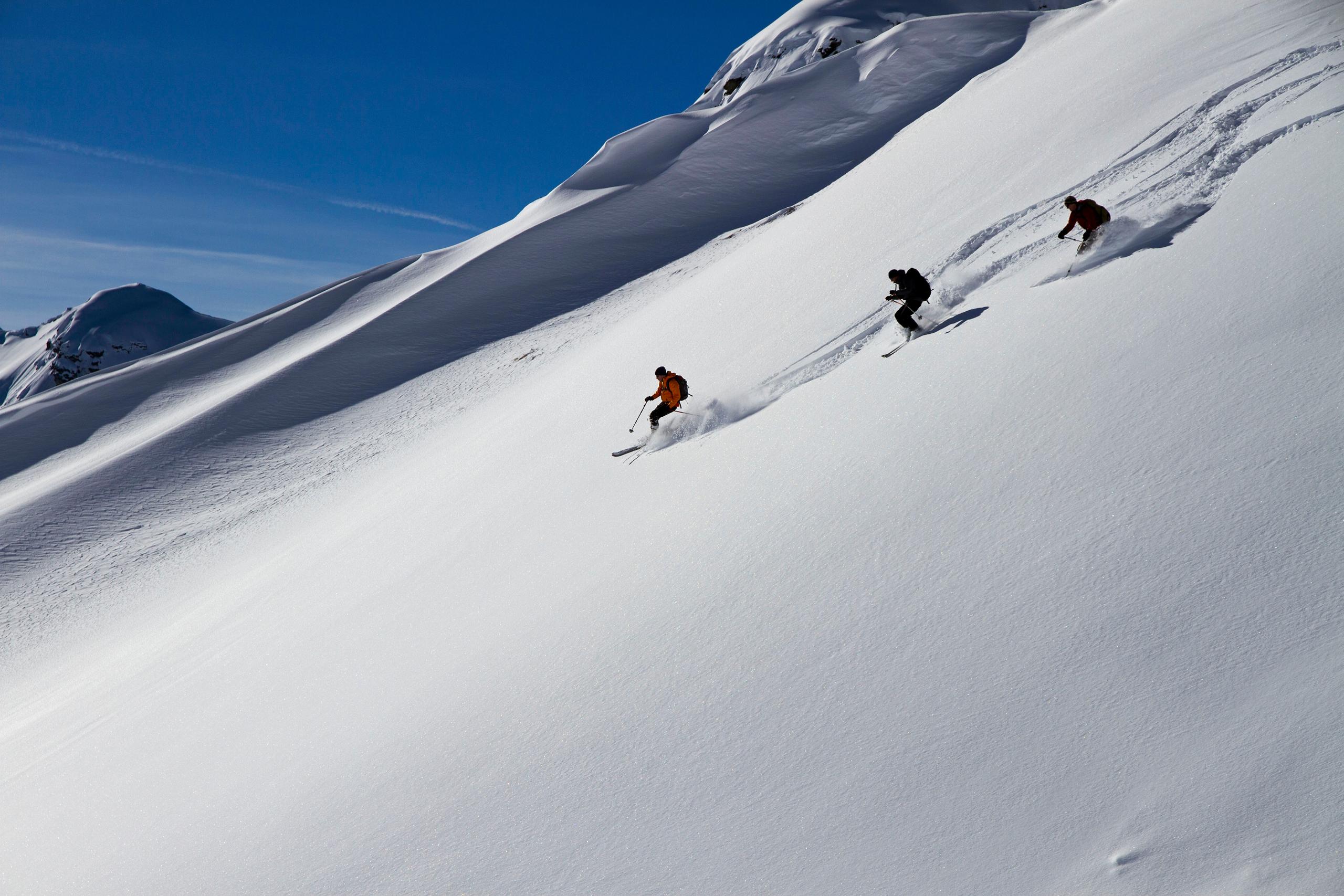 Лыжники на спуске с горы в регионе Ретикон (Rätikon), кантон Граубюнден, 2011 год (Keystone).