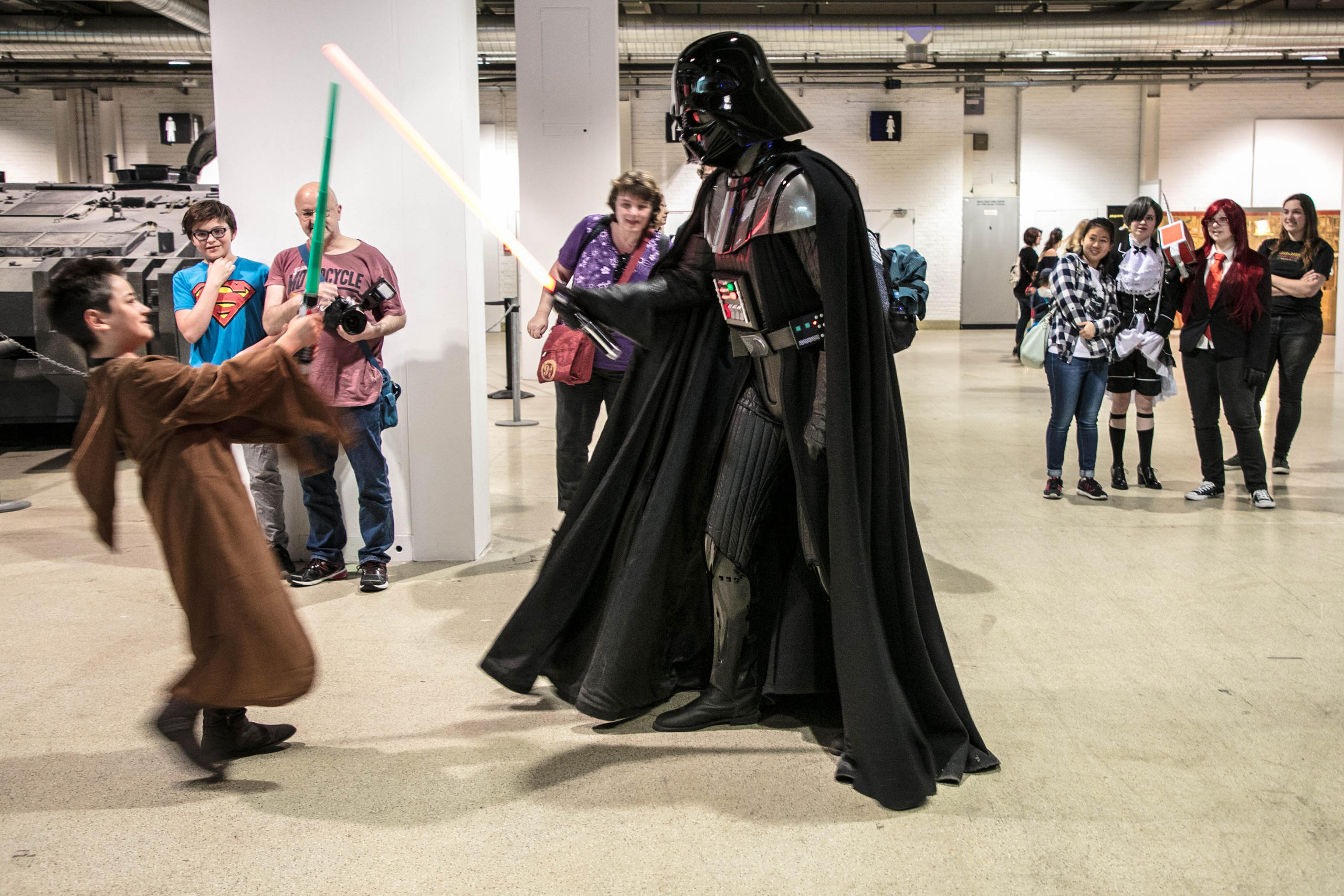 Выставка проходилаВнешняя ссылка сразу на трех этажах, так что у не очень опытных посетителей сначала просто разбегались глаза! Куда податься, что посмотреть, чему отдать предпочтение, в какую Вселенную погрузиться? Одним из самых притягательных центров экспозиции стала уникальная для Швейцарии кулиса, представляющая мир героев «Звездных войн». Соответственно, в первую очередь обращали на себя внимание «Штурмовики Первого орденаВнешняя ссылка», которых в рамках конкурса «Cosplay Contest» было представлено сразу восемь десятков.