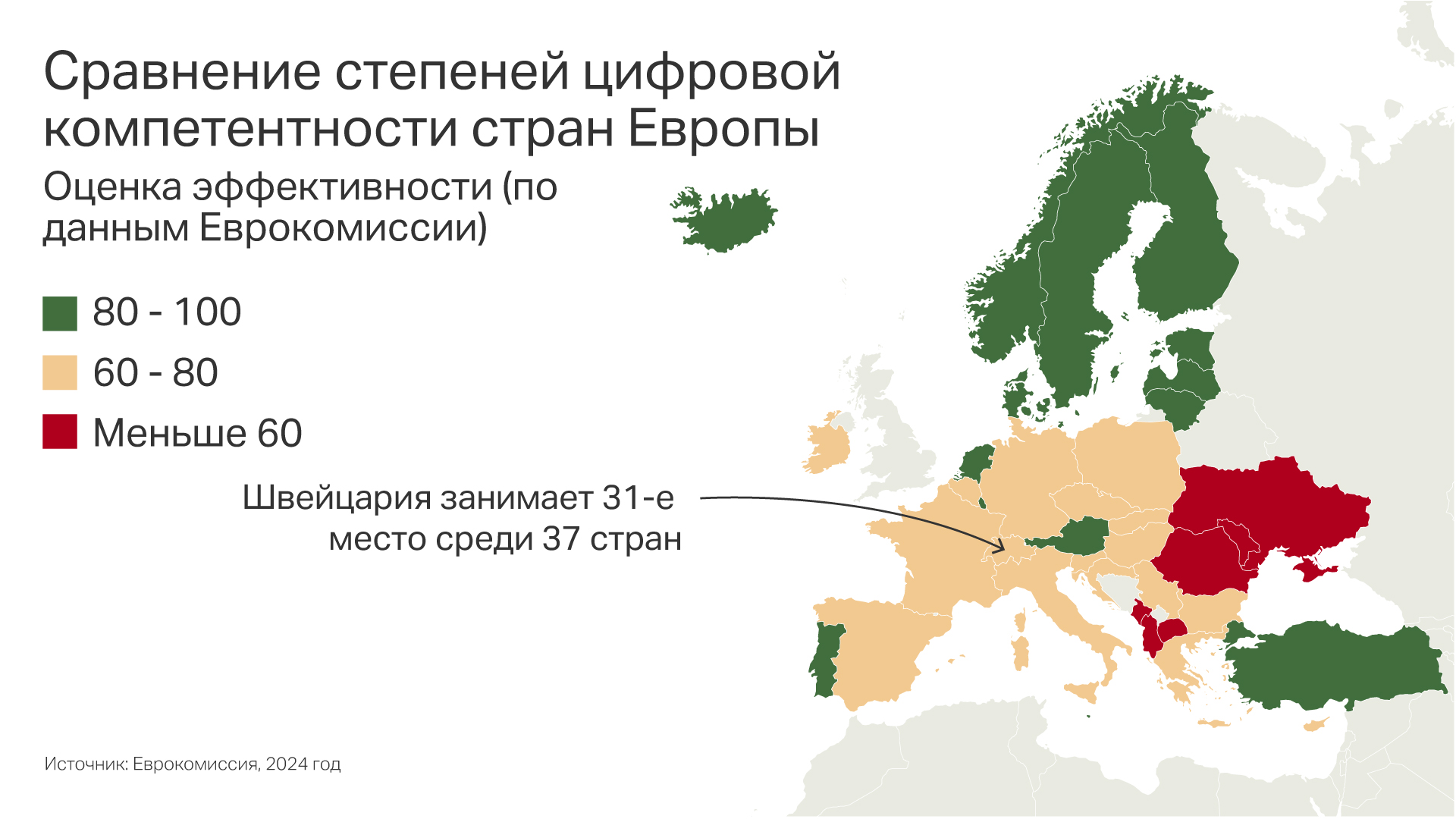 По мнению Аннет Лаубе, Швейцария движется в правильном направлении, но внимание следует сосредоточить не на технологиях, а на потребностях людей. «Недостаточно просто превратить бумажный бланк в PDF. Все процессы должны быть переосмыслены заново». Электронное удостоверение личности, считает она, лишь небольшая часть гораздо более масштабной головоломки: «Оно способствует цифровой трансформации, но его отсутствие не является непреодолимым препятствием». Сегодня более половины стран ОЭСРВнешняя ссылка (18 из 33) уже предлагают общий доступ к государственным услугам через цифровую идентификацию, в девяти других странах такой доступ возможен лишь частично.