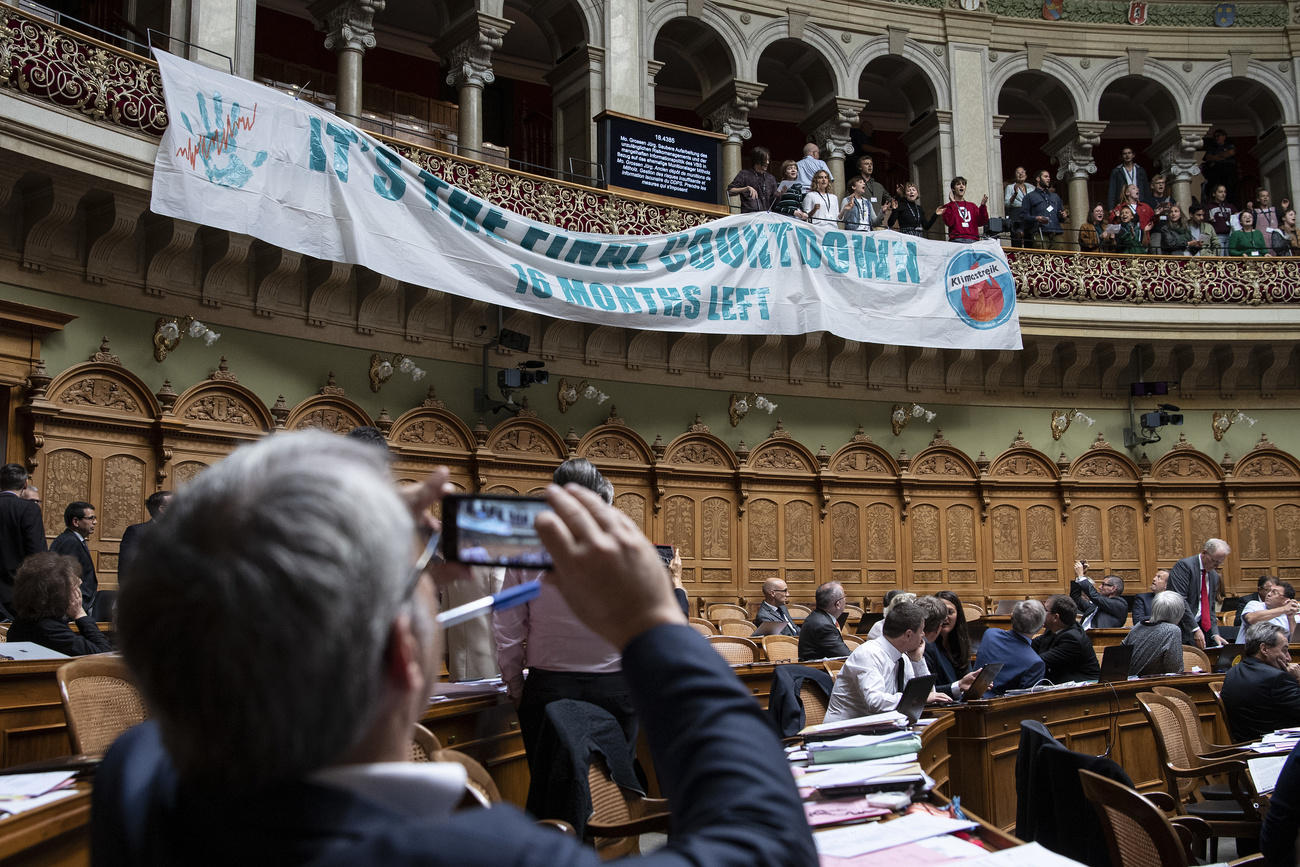 О том, как швейцарские климатические активисты врывались в парламент Швейцарии в нашем материале из архива по ссылке ниже: