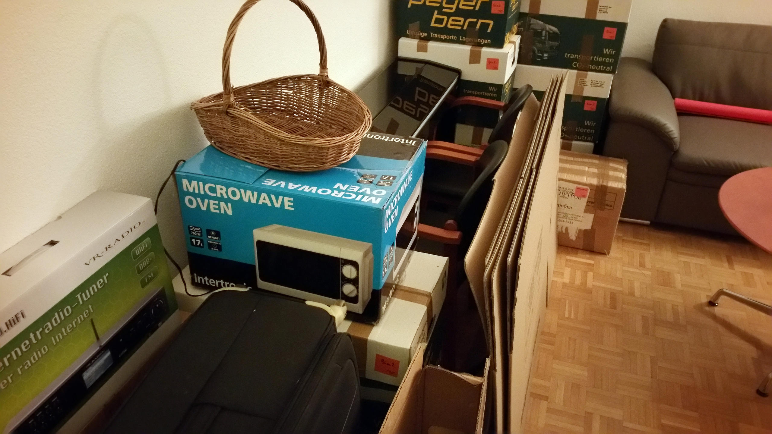 Услуги той компании, которой обратились мы, оказались и в самом деле относительно дорогими, но зато они организовали погрузку вещей, демонтаж всей мебели, перевозку, выгрузку и монтаж мебели в течение одного рабочего дня. Это был действительно высший пилотаж на стыке высокого искусства и действительно инновационных решений (см. видеоролик выше). Ровно в 7.00 процесс начался и ровно в 16.00 он был завершен. Кстати, не забудьте за свой счет покормить рабочих логистической фирмы завтраком (Das Znüni) и обедом. Это обязательно, такая услуга с Вашей стороны даже отдельно прописывается в договоре.