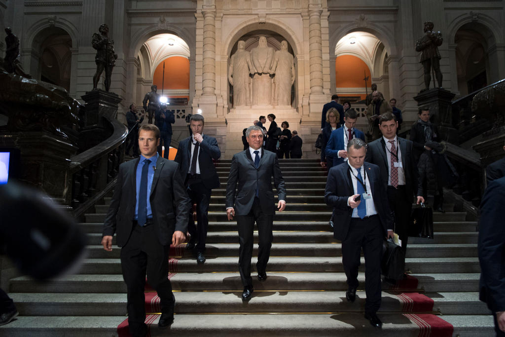 Парламентарии Госдумы России посетили сегодня своих швейцарских коллег из большой палаты парламента страны, Национального совета, при этом председатель нижней палаты парламента России Вячеслав Володин заклеймил санкции ЕС в отношении ряда лиц и фирм в России и обвинил США в антироссийской кампании.