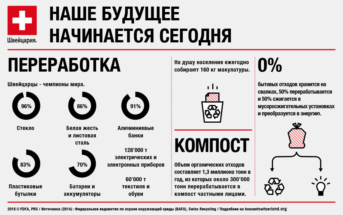 Итак, кто же все-таки в мире обладает самой развитой и передовой системой утилизации и переработки отходов? Напомним, что 25 сентября 2016 года в Швейцарии пройдет очередной национальный референдум, на который будет вынесен, кроме всего прочего, вопрос о будущем так называемой «зеленой экономикиВнешняя ссылка» в Швейцарии (здесь Вы найдете подробное досье по референдуму вообще и по данному вопросу в частности).