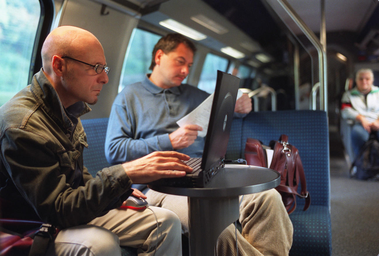 В Швейцарии человек, который что-то такое делает в компьютере, давно уже стал неотъемлемой «деталью интерьера» вагонов межрегиональных поездов. Keystone / Martin Ruetschi