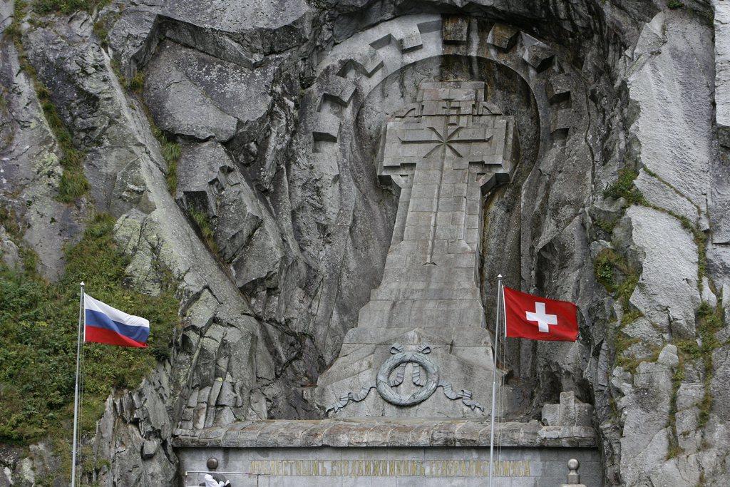Крест высотой в 12 метров: памятник российским воинам, высеченный на склоне ущелья Шёлленен, где в сентябре 1799 года состоялось знаменитое сражение у Чертова моста. Keystone