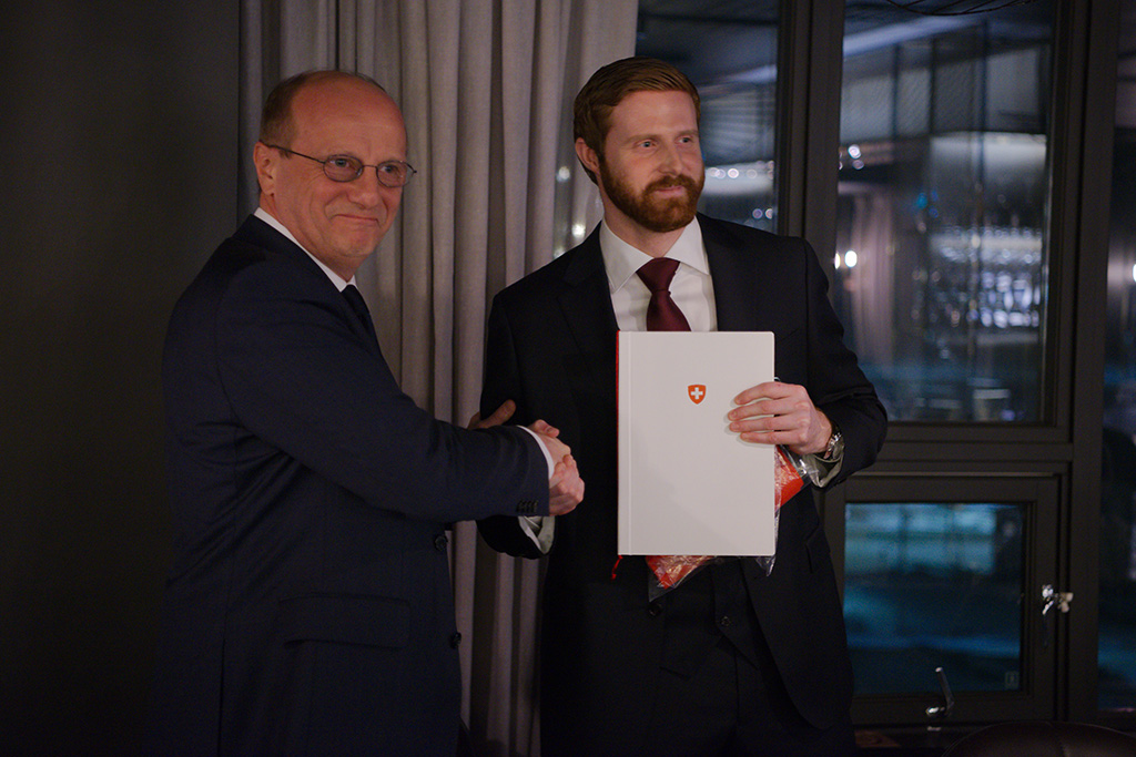 «Поскольку Швейцария тоже проводит свои исследования на Шпицбергене, то для нас очень важно было бы иметь здесь человека, который может всегда помочь, который способен плодотворно сотрудничать с губернатором. Марсель Шютц будет помогать послу в этом регионе, но он также будет служить прямым контактным лицом для швейцарских ученых», — указал Ю. Ягги группе приглашенных на церемонию гостей, в которую входили губернатор Шпицбергена Ларс Фаузе (Lars Fause) и Генеральный консул России Сергей Гущин. Как сказал М. Шютц, для него «большая честь и гордость стать первым в истории Почетным консулом Швейцарии в высоких арктических широтах».