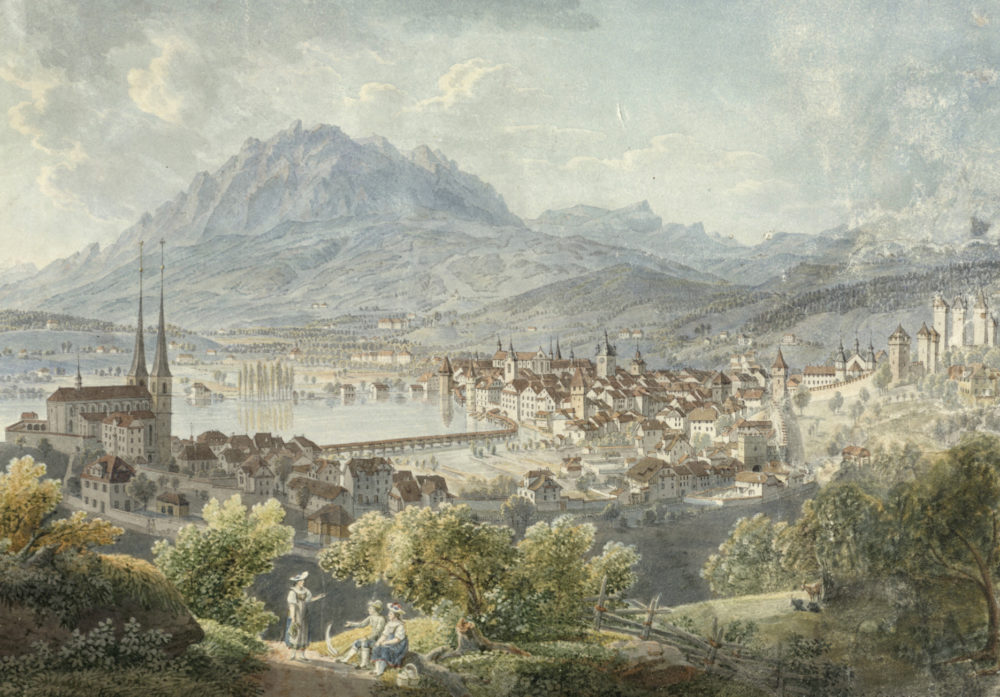В рассказах о путешествиях, опубликованных в 18-м веке, Люцерн описывается как грустный, старомодный городок, ограниченный и отсталый. Артур Шопенгауэр сформулировал ситуацию как всегда в форме афоризма: «Маленький, плохо построенный, пустынный городок. Но виды тут божественные». Потому что, в самом деле, если Люцерн и мог что-то предложить, то только одно: виды. Очень мало есть в Швейцарии городов, из которых можно смотреть прямо на юг через озеро на горы, покрытые снегом почти круглый год. Это можно сделать в Женеве, в Монтрё и еще здесь, в Люцерне. И этому озеру очень подходила романтическая репутация, созданная ему в 19-м веке.