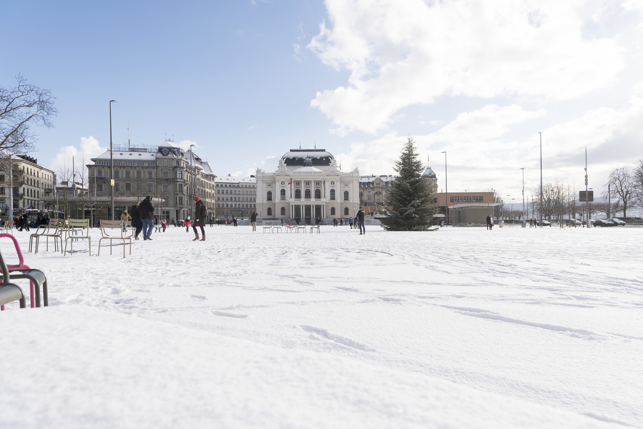 Здание Цюрихской оперы — это, безусловно, одна из визитных карточек города. Оно находится в центре города, и мимо него трудно пройти мимо. Однако во время пандемии не то что зайти внутрь, но и «пройти мимо» представляется сложным. И вот стоит театр на площади, занесенной снегом во время бесконечных январских снегопадов, и выглядит немного одиноким и заброшенным.