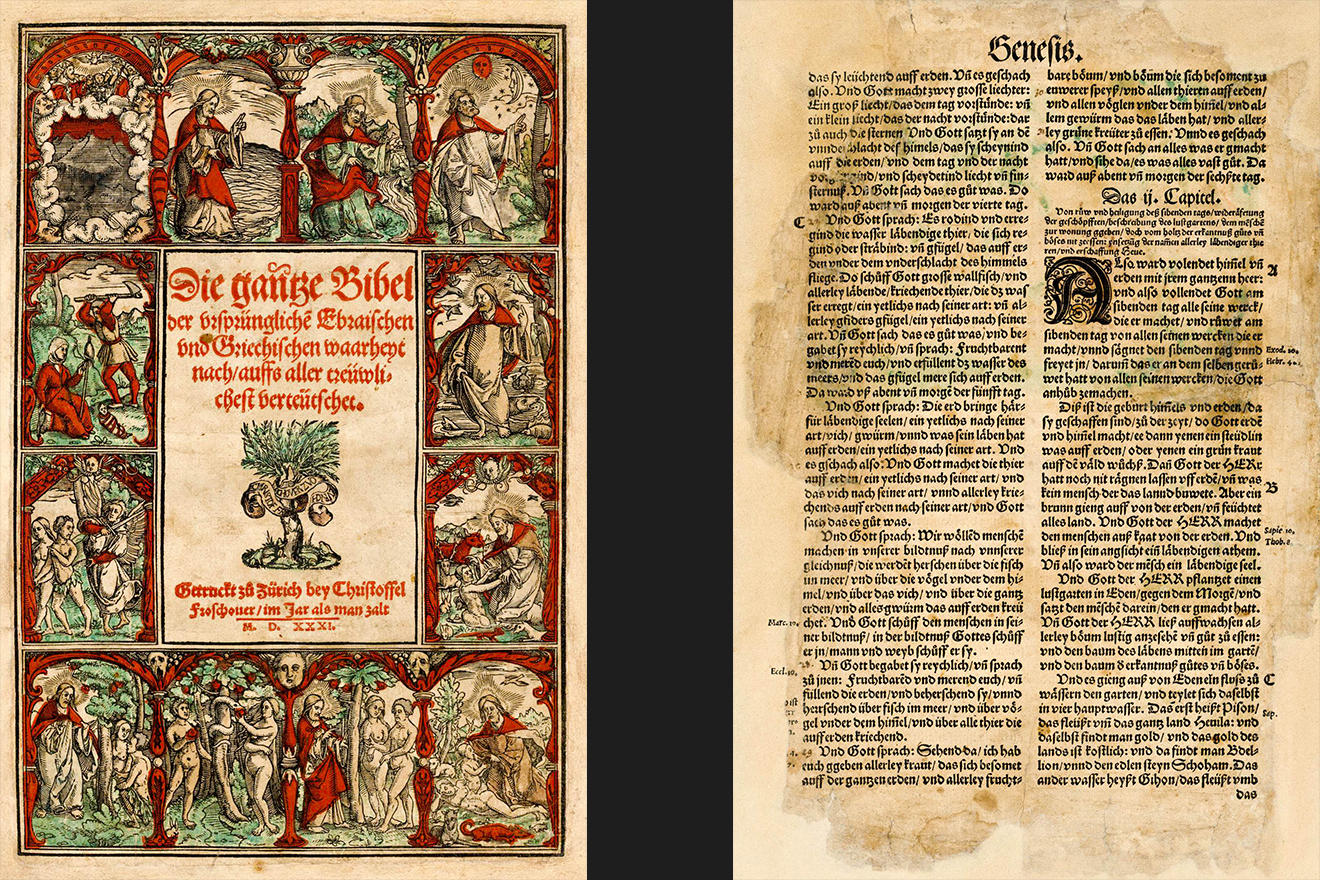 Особенностью Цюрихской Библии были почти две сотни великолепных иллюстраций, авторами которых выступили такие выдающиеся художники той эпохи, как, например, Ганс Гольбейн Младший (Hans Holbein der Jüngere; 1497, Аугсбург — 1543, Лондон). За всем этим кроется вполне современный педагогический концепт: яркие картинки должны быть «веселыми и познавательными», мотивирующими читать текст Писания и помогающие запоминать его важнейшие места. В отличие от появившейся три года спустя Библии Лютера, содержащей и Новый и Старый завет, Цюрихская Библия была результатом работы не одного человека, но целого коллектива авторов. Сегодня сохранились только три экземпляра этого бесценного памятника культуры, один из которых хранится в Цюрихском Гроссмюнстере, там, где эта Библия и создавалась.