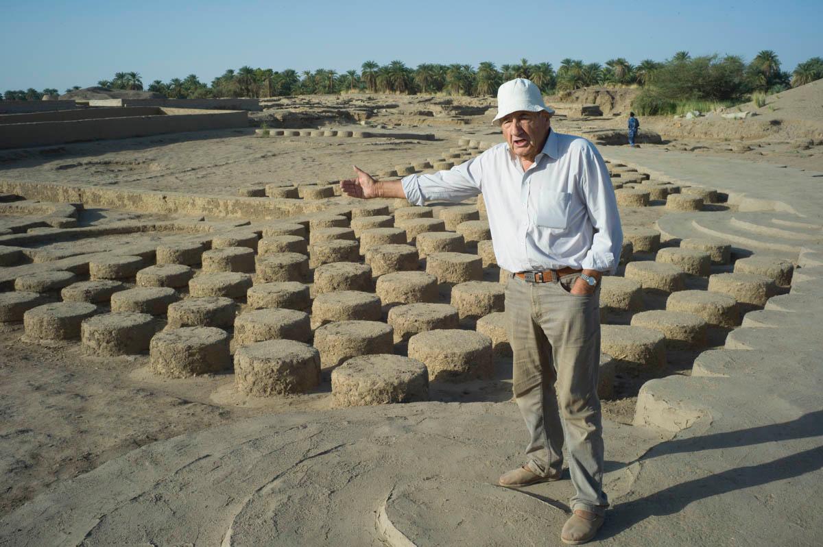 Несмотря на свои 82 года он бодро карабкается по стенам и грунтовым отвалам, временами делая на пару минут перерыв для объяснений, жонглируя при этом датами и событиями и не забывая приветствовать рабочих на местом арабском, — с примесью женевского акцента, — диалекте.