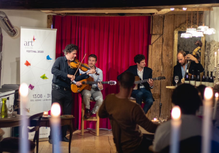 АртДиалог — фестиваль уже традиционный и во многом единственный в своем роде. Его уникальность заключается в объединении разных видов искусств — от музыки и балета до фотографии и виноделия. Кроме того, этот форум отличается тем, что его концерты, выставки и дегустации проходят не в одном определенном помещении или концертном зале, а сразу на нескольких площадках, расположенных в городках на Бильском озере, — прежде всего в Биле и Нёввиле. Но этот год внес свои коррективы.