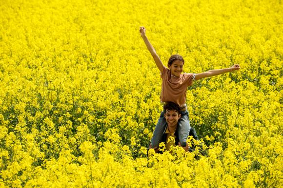 Two happy people in a field