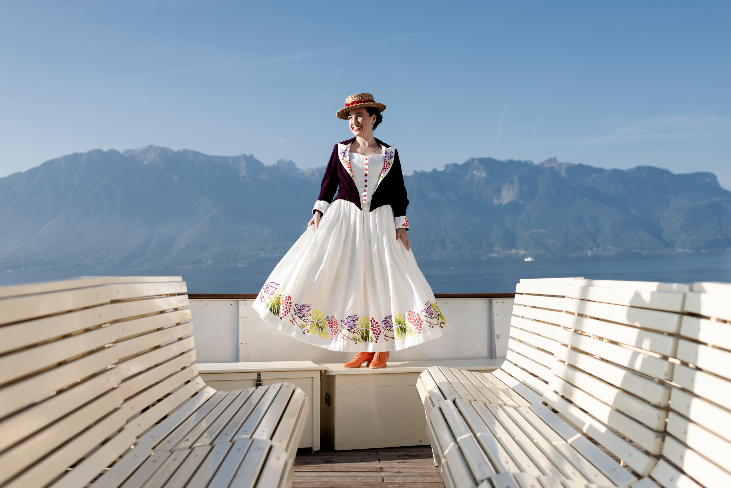 Открытая арена праздника, рассчитанная на 20 тыс. зрителей, напоминает гигантский космический корабль, опустившийся с небес на рыночную площадь городка Веве на берегу Женевского озера. Амфитеатр, оформленный в красных, желтых, зеленых и коричневых тонах, станет в прямом и переносном смысле несущим элементом предстоящего Праздника виноделов (Fête des VigneronsВнешняя ссылка), проводимого всего четыре раза в столетие и каждый раз до неузнаваемости преображающего бывшую рыбацкую деревушку на побережье Лемана.