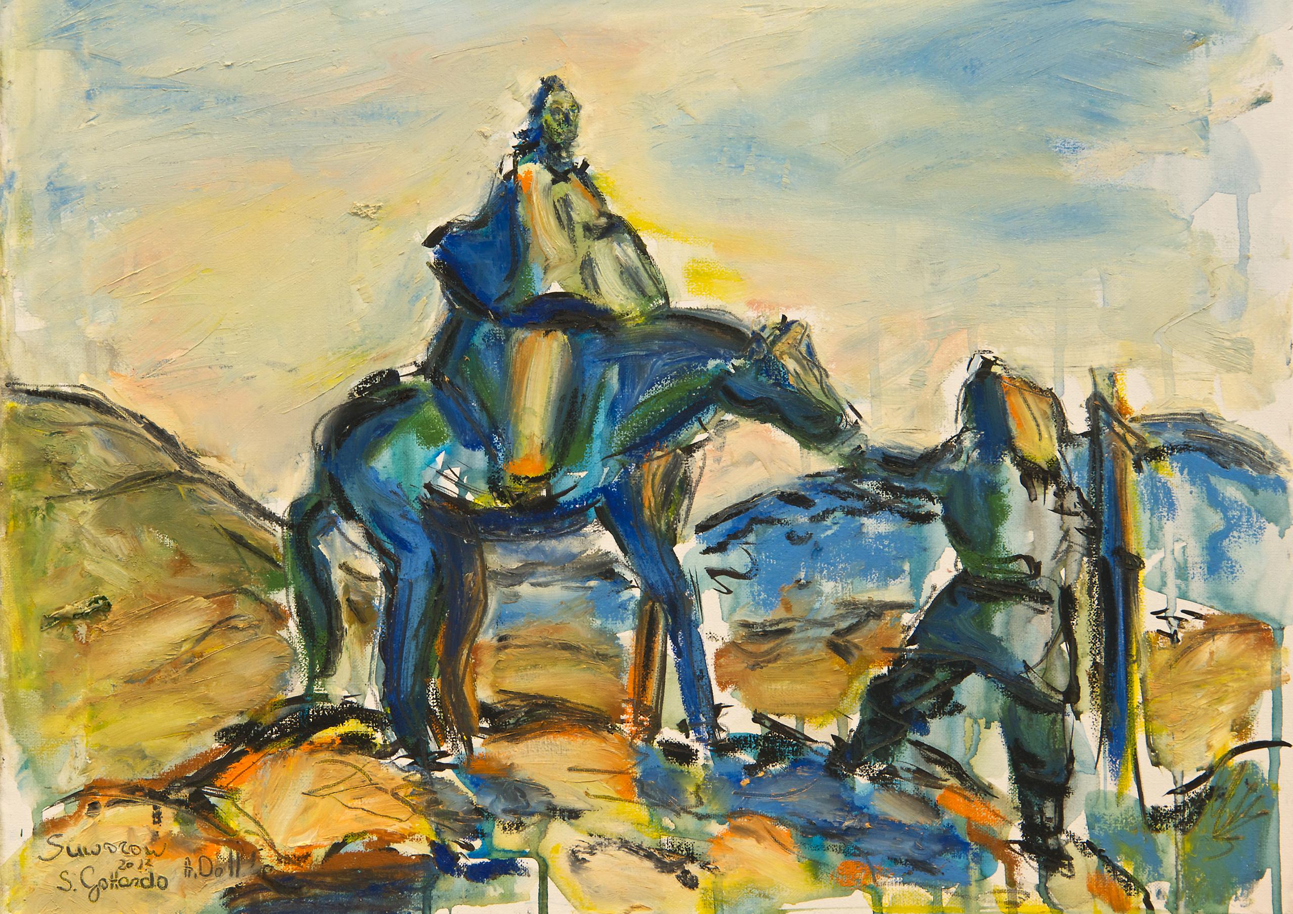 Как раз приближался суворовский юбилей, и я сделал серию из десяти работ, изображающих места, связанные с именем Суворова. Мне хотелось показать, какими стали суворовские места в наши дни. Я думал, что это было бы интересно посмотреть и самим швейцарцам. Картины серии «По следам А.В.Суворова в Швейцарии» были показаны Музее Сен-Готтарда (Museo nazionale del San GottardoВнешняя ссылка), Музее А.В. Суворова в г. Линталь (Suworowmuseum LinthalВнешняя ссылка) а сейчас они находятся Муниципальном музее Пайерна (Musée de l’Abbatiale de PayerneВнешняя ссылка).