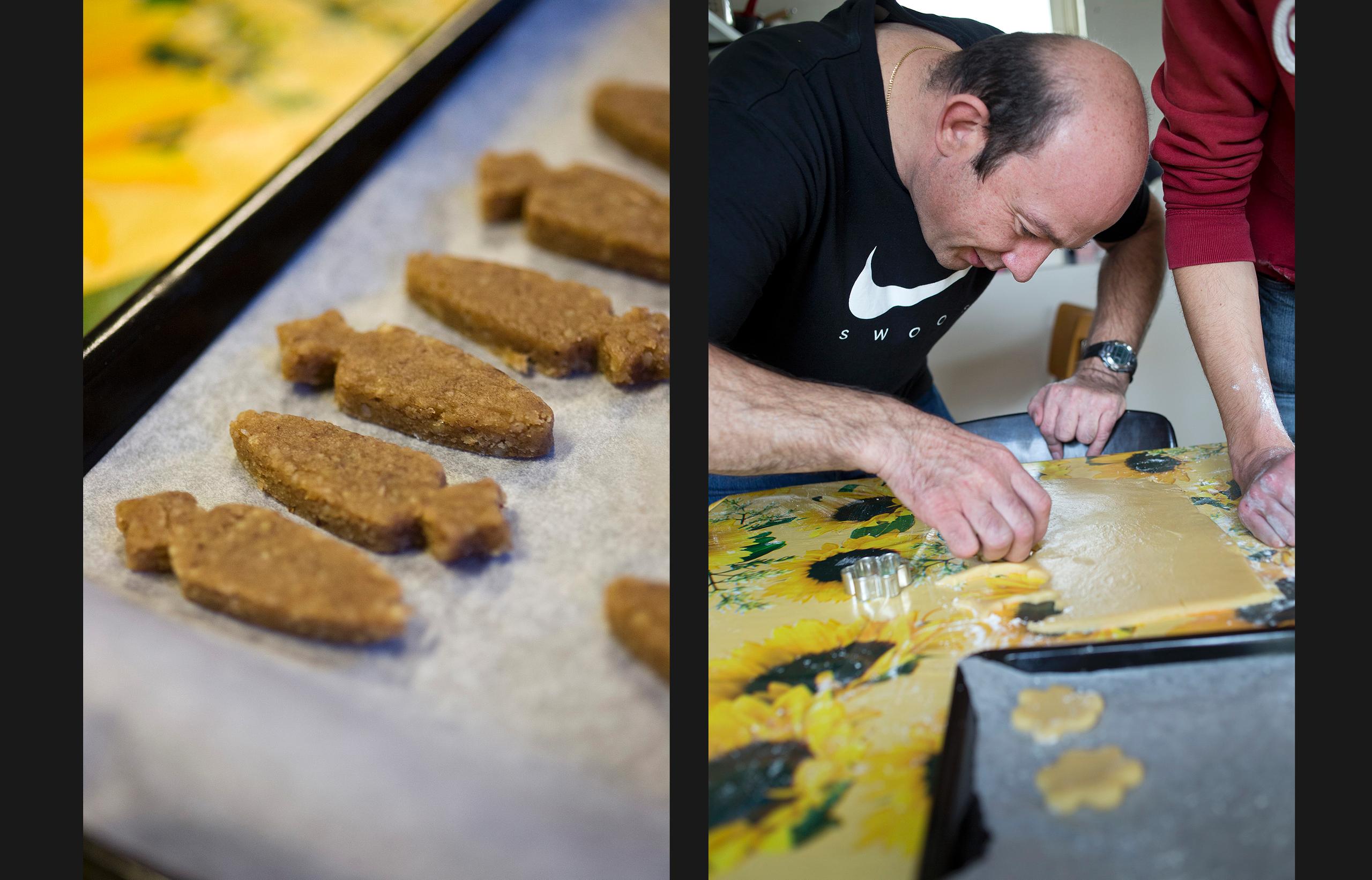 Сегодня в центре готовят «Weihnachtsguetsli», разнообразную рождественскую выпечку. Печенья «по-милански» («Mailänderli»), с миндалем («Brunsli») и с корицей в форме звезды («Zimtsterne») на продажу не пойдут, эти лакомства готовят для «своих» в качестве особого десерта к праздничному ужину, который обычно по субботам сотрудники центра устраивают для своих подопечных. А еще их можно будет подарить друзьям и близким.