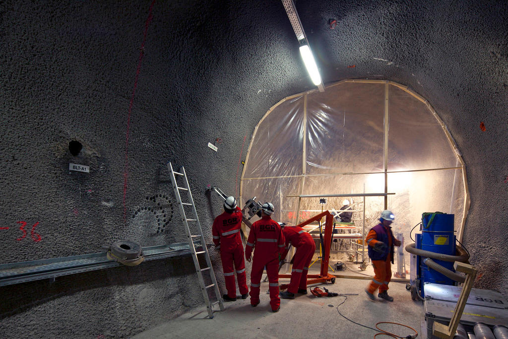 После аварии на ЧАЭС в 1986 году правительство Швейцарии решило остановить проект АЭС в городе Кайзераугст и отказаться от его реализации. В 1977 году акции протеста прошли и около строящейся станции АЭС Гёсген (Gösgen). В строй она вошла двумя годами позже. Начиная с конца 1980-х годов общество «Nagra» исследовало различные горные породы, в том числе опалинустон (opalinuston), глину, которая обладает хорошими уплотняющими и изоляционными свойствами. В 2006 году Федеральный совет (правительство Швейцарии) разрешил утилизацию атомных отходов в таких почвах, которые в Швейцарии располагаются, в частности, в регионе города Сен-Урсан (Saint-Ursanne), кантон Юра.