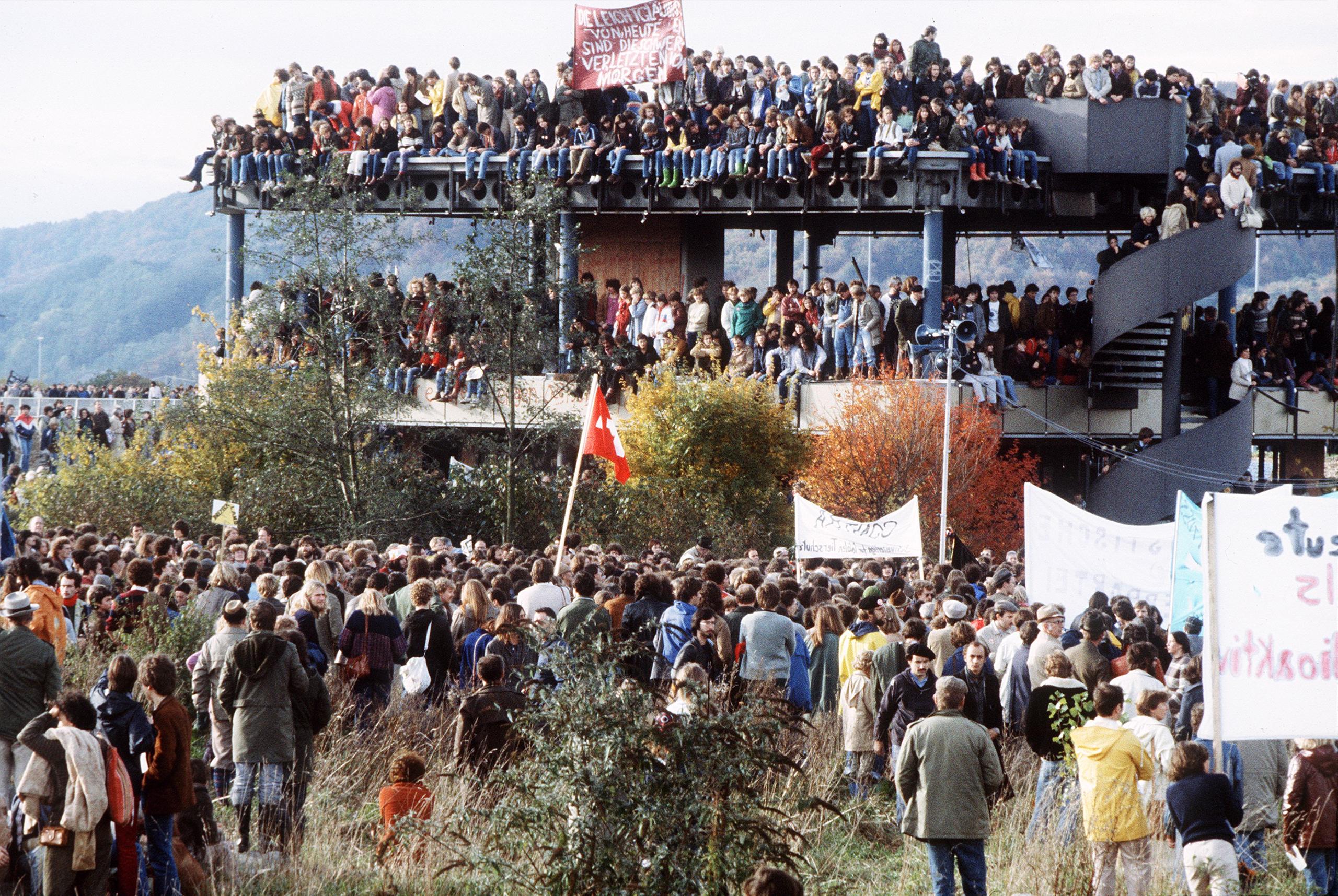 Общественное движение, направленное против АЭС, зарождается в Швейцарии в 1970-е годы. Свою первую крупную акцию они провели в 1975 году, оккупировав на некоторое время строительную площадку, на которой возводилась АЭС в городе Кайзераугст (Kaiseraugst), кантон Аргау (Aargau). Чем дальше, тем движение против строительства АЭС в городе Кайзераугст (Kaiseraugst) становилось все сильнее и влиятельнее. Насколько вообще необходима стране атомная энергетика и насколько возможно обеспечить безопасное использование этого источника энергии: дискуссии по этим и другим вопросам становились в Швейцарии все более жаркими.