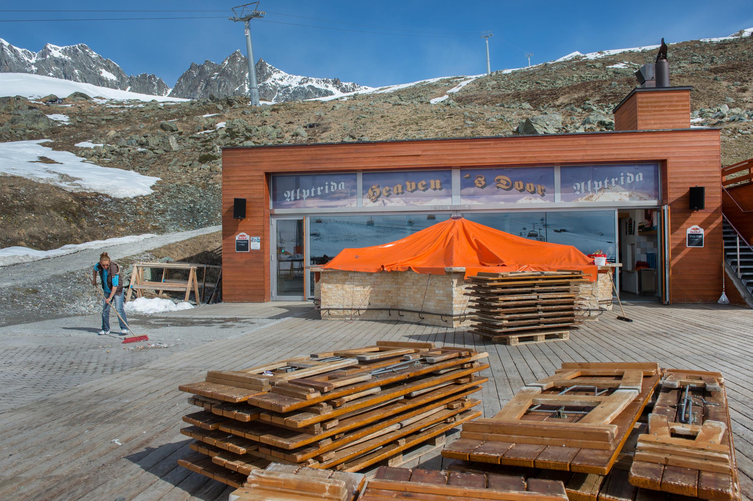 Летние террасы и рестораны уже сейчас начали активно готовиться здесь к летнему сезону. Как это происходит и выглядит — мы можем увидеть на фотоснимках Томаса Вюттриха. Эти курорты находятся в разных экономических условиях: швейцарский страдает от сильного франка и оттока туристов, австрийский скорее в большей степени затронут климатическими переменами.