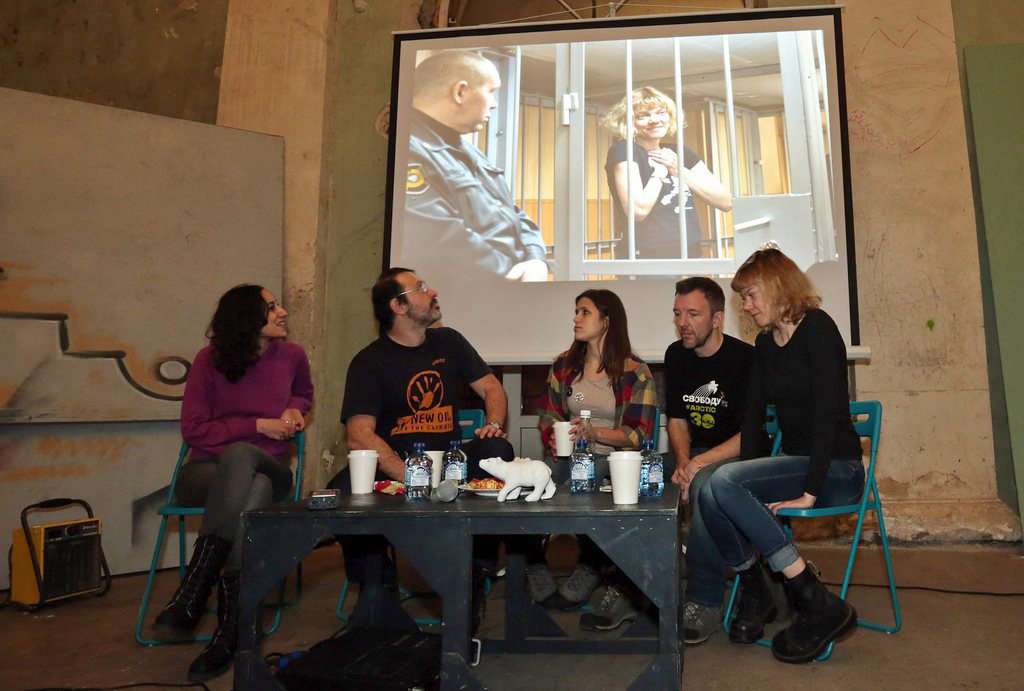 «Вас где-нибудь еще, кроме России, задерживали»? — спрашивают из зала. Микрофон берет Сини, опытная активистка из Финляндии, и начинает перечислять: «В Дании, Финляндии, Германии, Франции…». Зал смеется и хлопает, а Сини смущенно улыбается и добавляет: «Я готова нести полную ответственность за последствия моих акций…». Готова, но не к пятнадцати же годам тюрьмы…