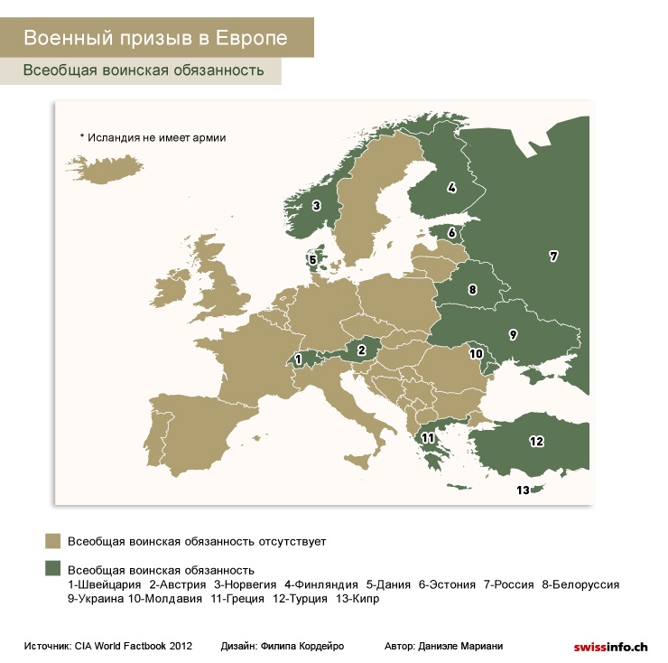 В последние годы в Европе всеобщая воинская обязанность стала фактически исключением. В Западной Европе только Австрия и Швейцария пока еще сохраняют систему массового обязательного призыва.