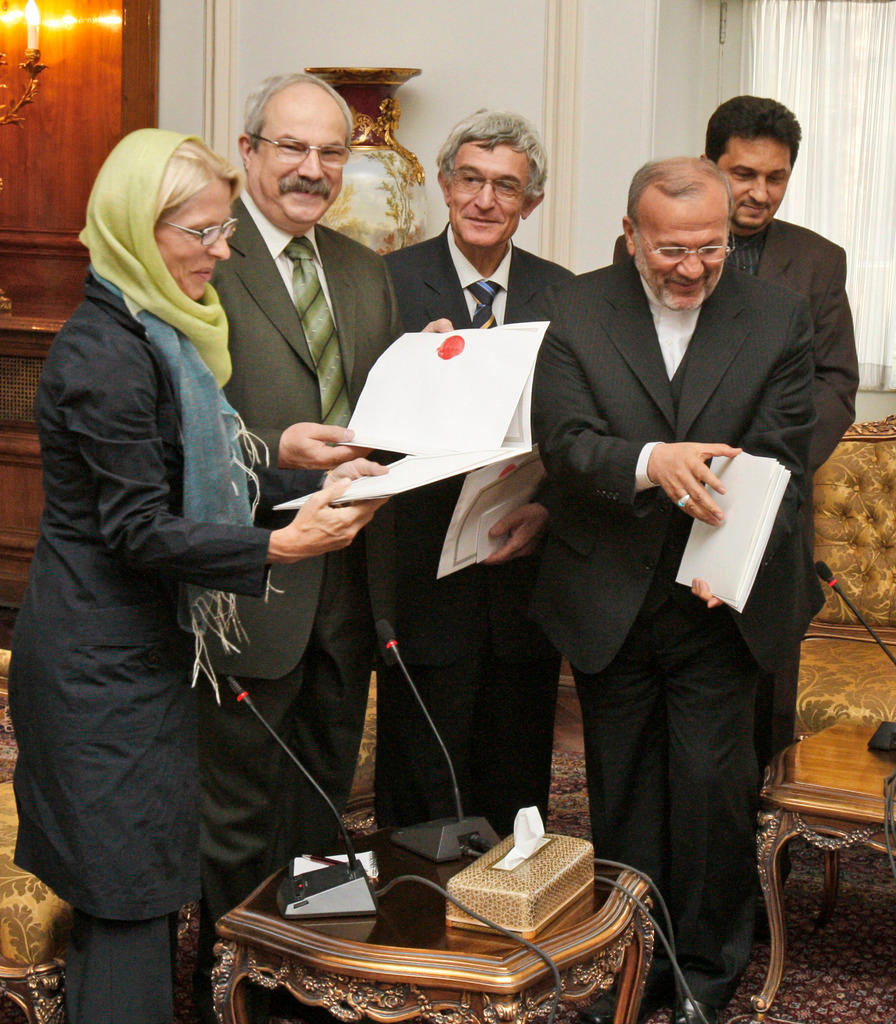 Ливия Лёй Агости (Livia Leu Agosti) одна среди коллег-мужчин: с 2009 по 2013 год она представляла Швейцарию в качестве первой (и пока единственной) женщины-посла в Иране. Она была также первой женщиной-послом во Франции. AP/Vahid Salemi