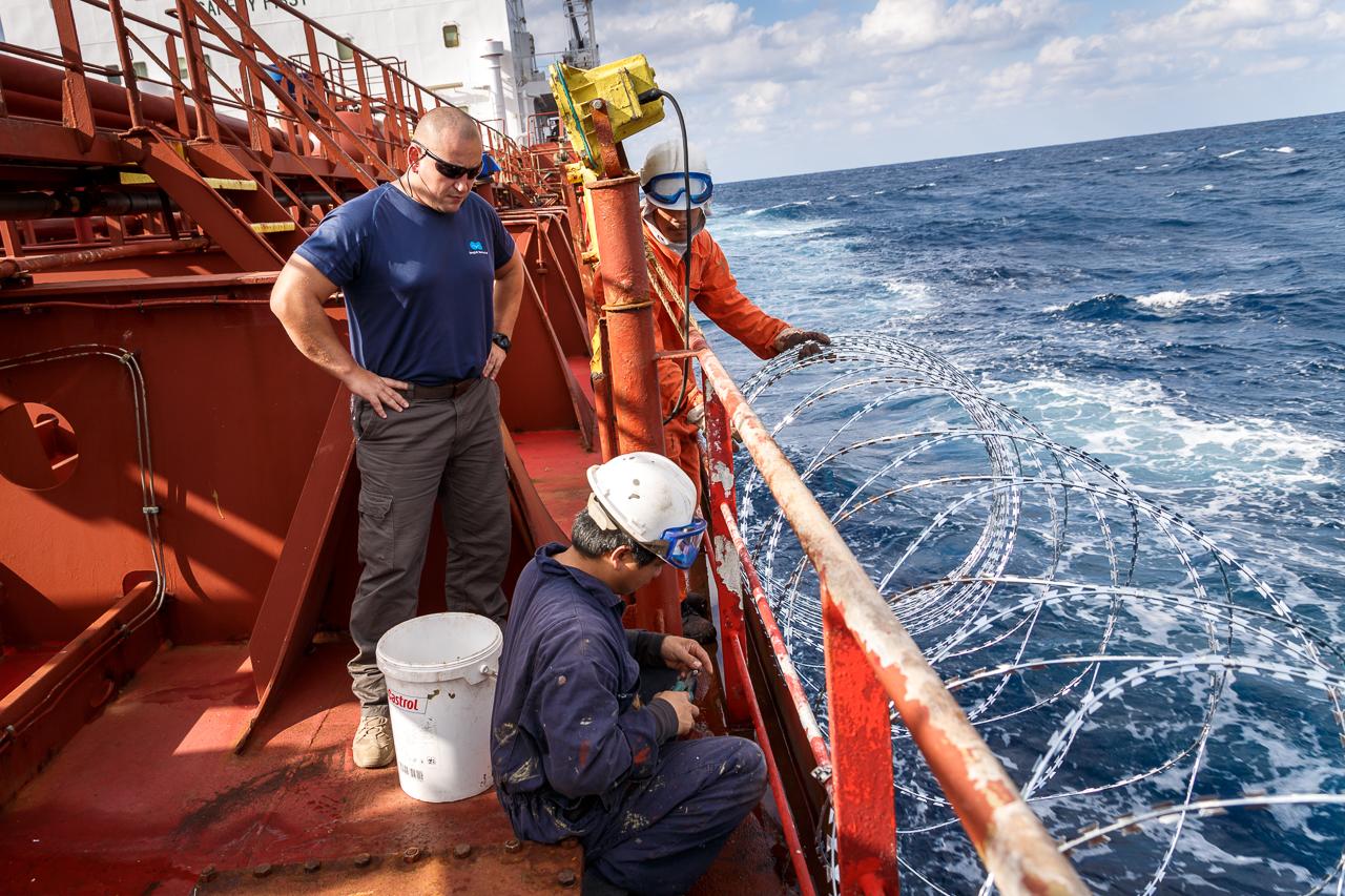Руководит ими Андрей, 37-летний бывший полицейский из Румынии. Его наняла частная израильская компания «Seagull Maritime Security», офисы которой расположены на Мальте и Кипре. «Наша работа, в первую очередь, состоит в том, чтобы отпугнуть пиратов и дать им понять, что нападать на нас — это не лучшая идея. Выглядит вся эта проволока немного смешно, тем не менее, судовладелец, пренебрегающий такими мерами предосторожности, рискует и очень сильно.