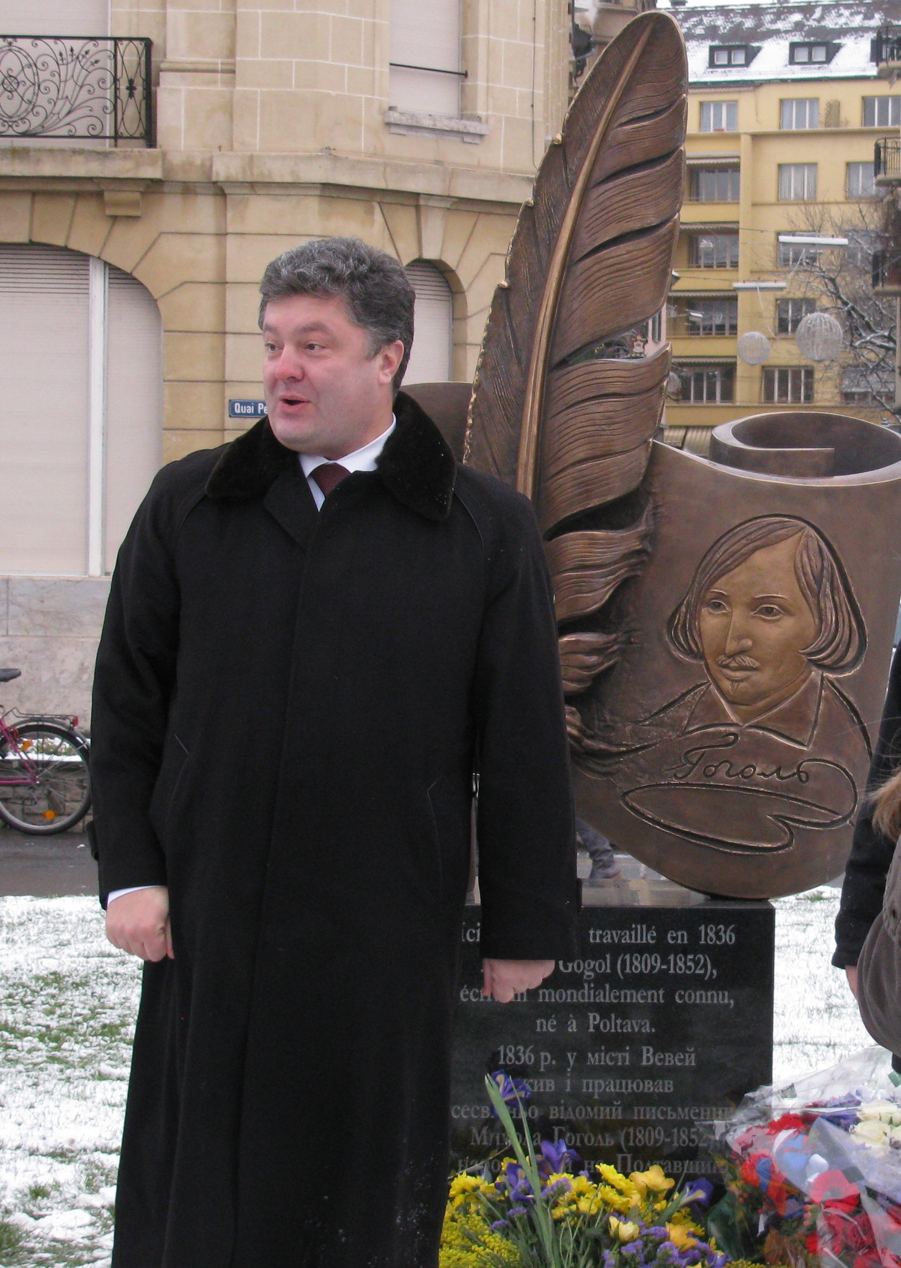 Это было сделано в честь 200-летия писателя, который провел в Вёве несколько месяцев в 1836 году, работая над «Мертвыми душами». 18 декабря 2009 года Порошенко сам же и открыл памятник на берегу Женевского озера, посетив Швейцарию уже в должности министра иностранных дел. На торжественной церемонии присутствовали тогда послы Украины и России, ведь для обеих стран Гоголь — великий национальный писатель.
