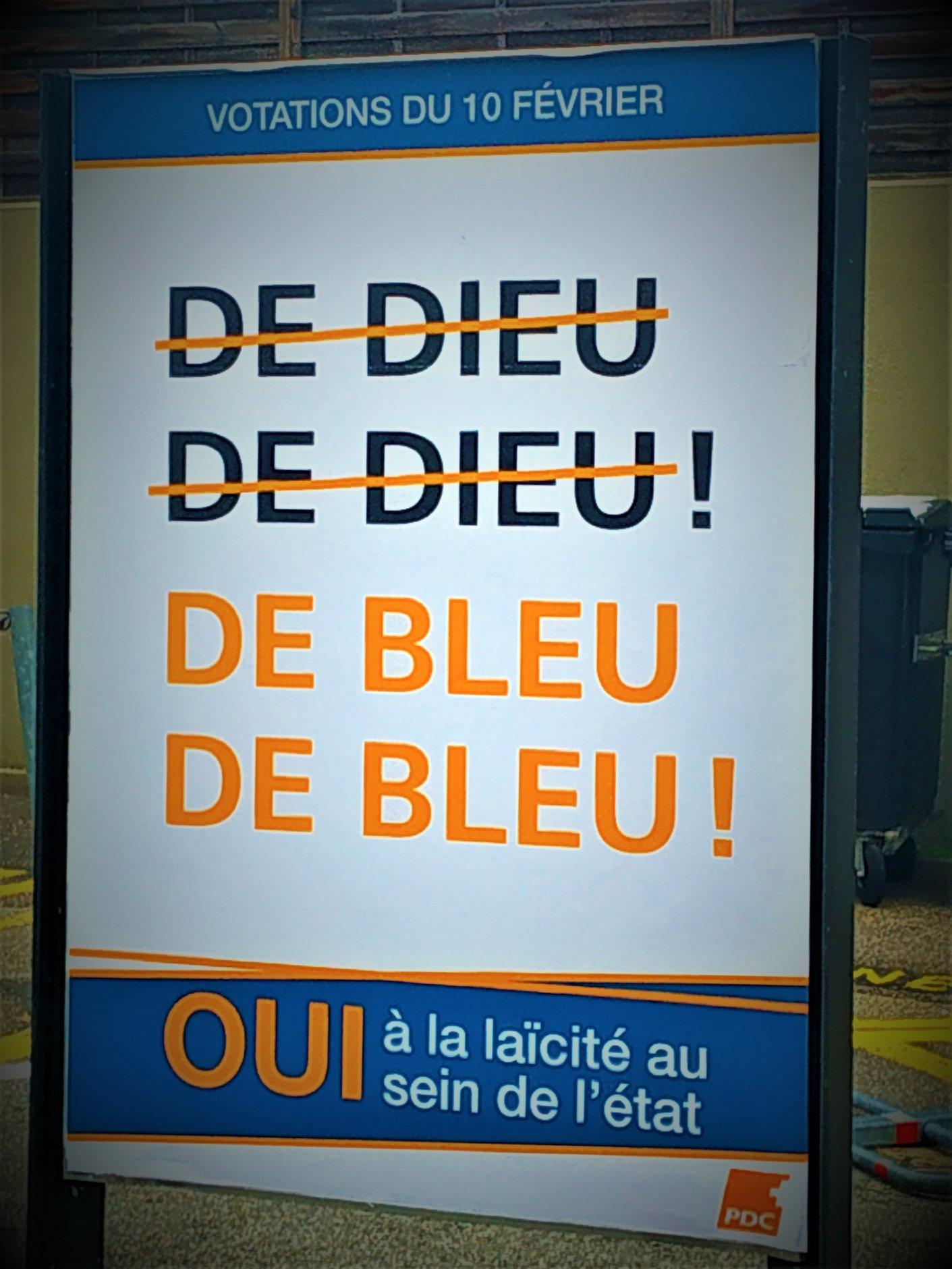 На кантональном референдуме в Женеве 10 февраля 2019 года избиратели выскажут в том числе своё мнение о принципе последовательного отделения церкви от государства. Новая редакция кантонального «Закона о светском государстве» («Loi sur la laïcité de l’Etat»), запрещает, в частности, любым госслужащим, в том числе и учителям и депутатам, ношение на работе религиозных символов или символов, воспринимаемых в общественном мнение в качестве таковых, включая нательные кресты, головные платки и шапочки-кипы.