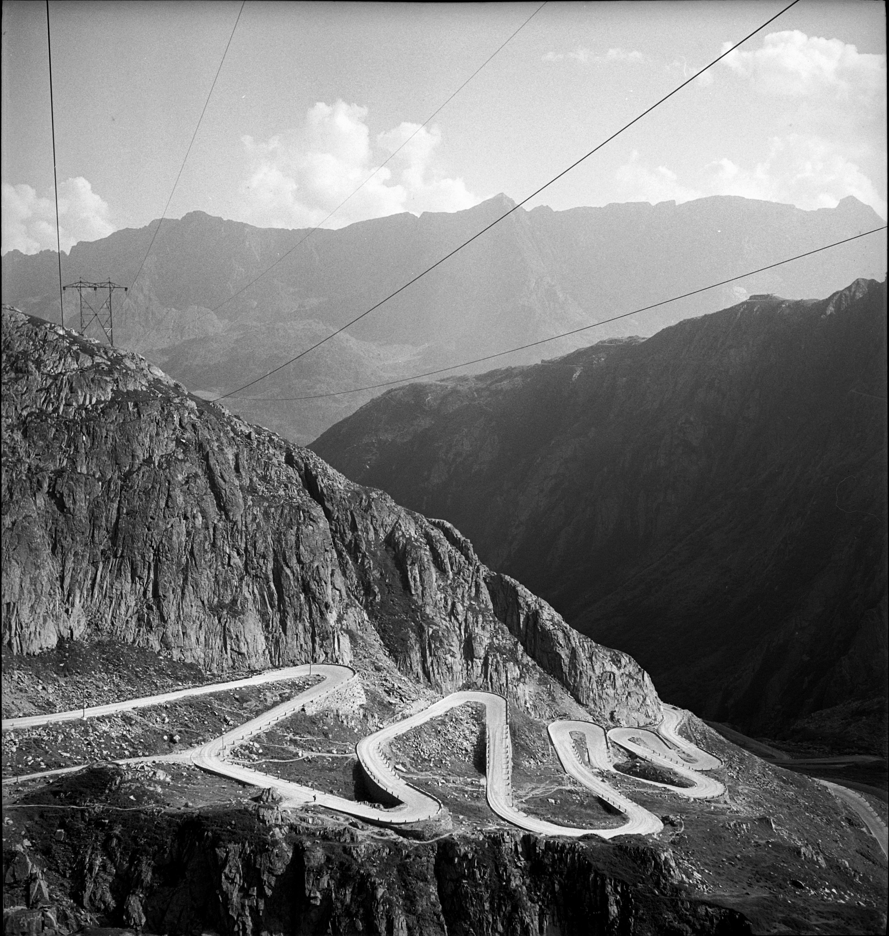 Но ведь раньше автотуннеля не было? Совершенно верно, и желающим провести отпуск в Италии приходилось преодолевать перевал Сен-Готард по горному серпантину. Посмотрите, как это было!