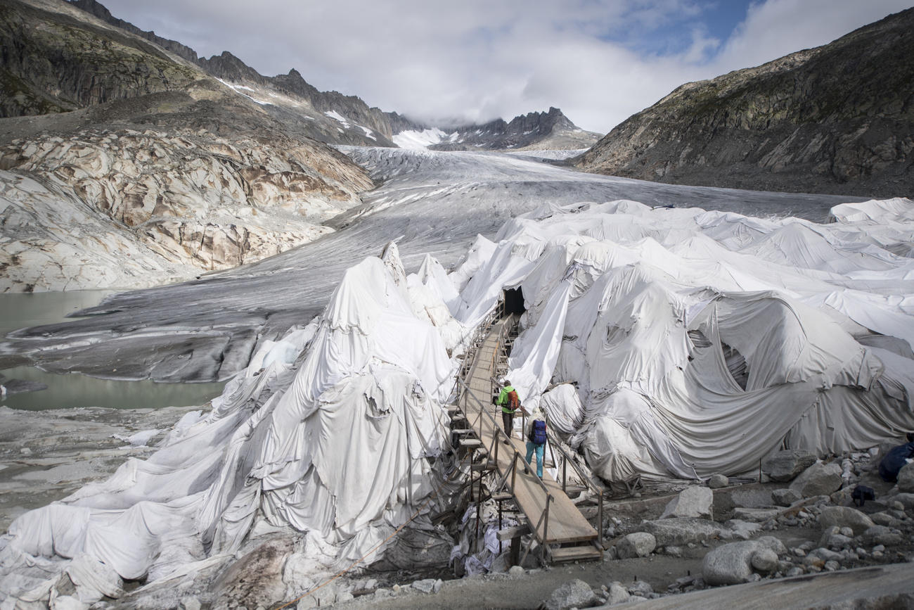 Существует множество методов, с помощью которых можно было бы добиться замедления темпов таяния ледников. На протяжении десяти лет часть Ронского ледника в кантоне Вале закрывается, например, белым полотном, специально разработанным для защиты реликтового льда от солнечных лучей. Собственно, сам глетчер, может быть, было бы и не так уж жалко, но внизу, подо льдом, находится знаменитый ледяной гротВнешняя ссылка — одна из главных туристических достопримечательностей этой части Альп.