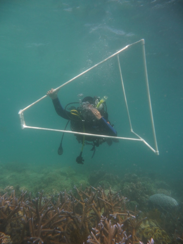 Примерно в 8:00 мы садимся в лодку и около получаса плывем на место. Затем в ходе двух сеансов погружения, каждый из которых длится 1-2 часа, идет сбор данных и фотосъемка. Иногда я брала также образцы воды, анализ которых требовал в таком случае еще пары часов дополнительных исследований в лаборатории острова. Эта работа непосредственно «на поле боя» позволила Кате первой обнаружить болезнь, которая передается кораллам через морских улиток вида Drupella.