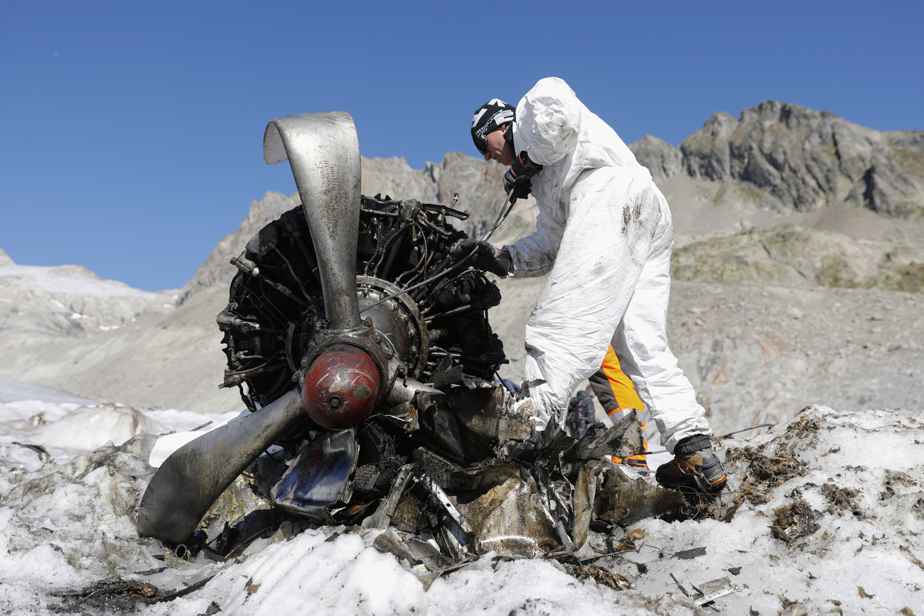 В результате таяния ледников в горах все чаще находят не только человеческие останки. Так, в 2018 году исчезнувший глетчер позволил обнаружить фрагменты и детали разбившегося американского военного самолета, совершившего 70 лет назад аварийную посадку в Альпах. «Мы нашли блок двигателя с пропеллером, части несущих плоскостей и множество мелких деталей, а также несколько одеял», — рассказал Фриц Тойшер (Fritz Teuscher), руководитель спасательной группы, занимавшейся извлечением обломков летательного аппарата. Кабина пилота, однако, все еще находится подо льдом, добраться до нее пока не удается.