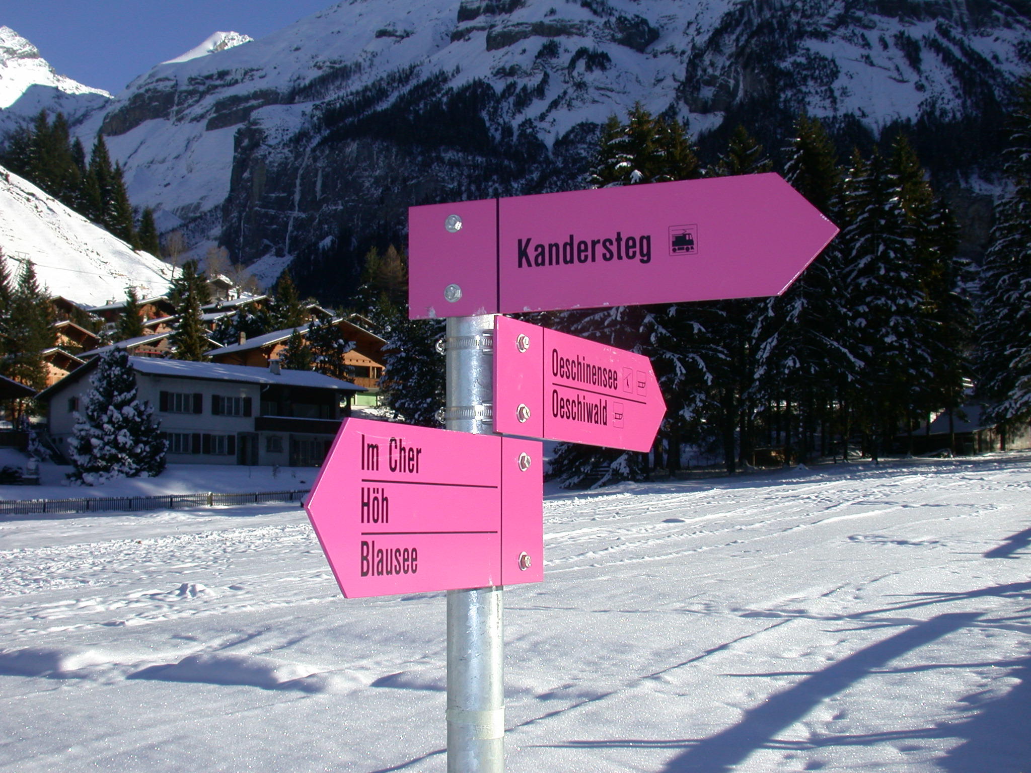 Благодаря усилиям любителей пешего туризма в 1930-х годах указатели в Швейцарии (и в Лихтенштейне) приобрели единую форму. На них маршруты для новичков, требующие минимального физического усилия, отмечены желтыми знаками или стрелками, часто — с изображением фигуры с рюкзаком и тростью.